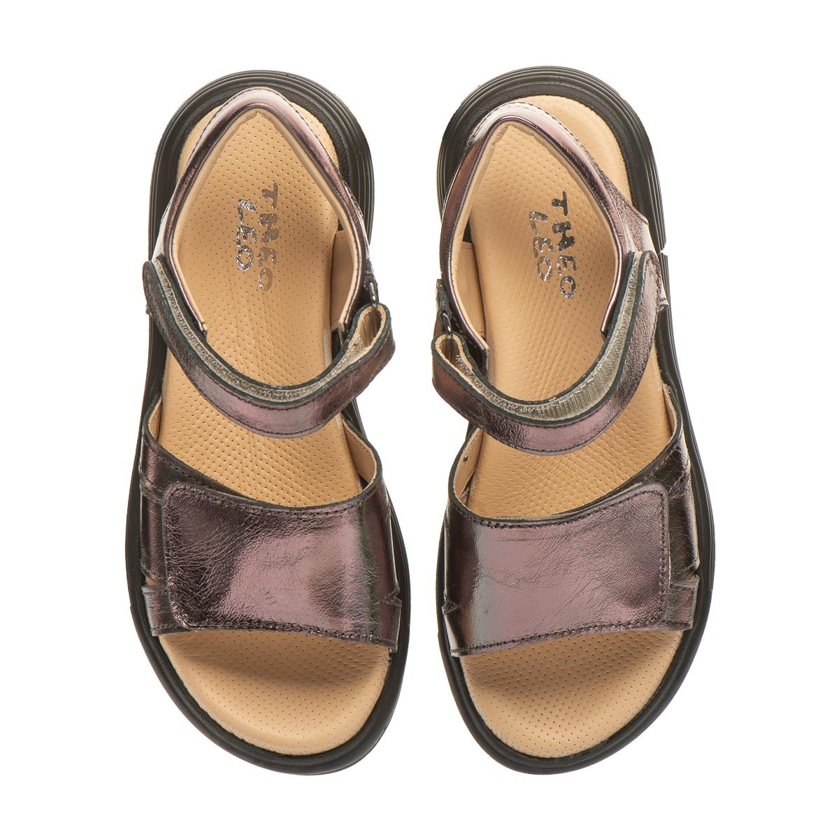 Theo Leo 2367 ANT легка та стильна модель босоніжок створена з натуральної шкіри кольору антрацит з перламутровим напиленням, чудове поєднання елегантності та комфорту. Босоніжки надзвичайно зручні, адже така модель максимально відкрита, підкладка з натуральної шкіри дозволяє ногам дихати. Зручність та швидкістю взування забезпечать дві липучки.