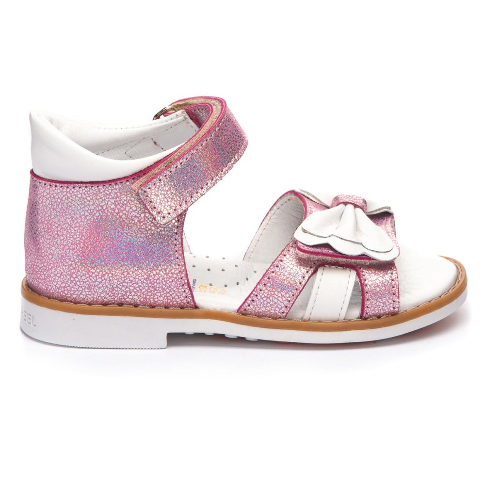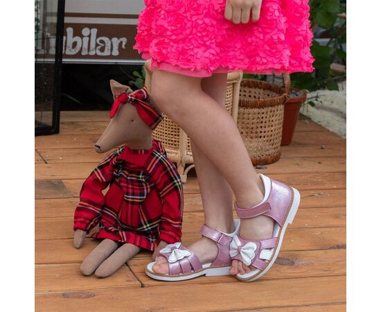 Модні та оригінальні босоніжки THEO LEO 1244 виконані з натуральної шкіри у рожевому перламутрі з красивим білим бантом.