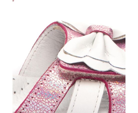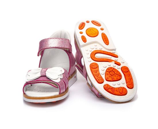 Босоніжки оснащені устілкою з анатомічним супінатором та підкладкою з натуральної шкіри. За допомогою двох надійних застібок та липучки можна відрегулювати повноту ніжки, надійно фіксувати її на нозі та легко знімати.