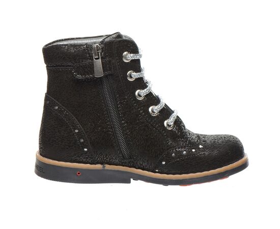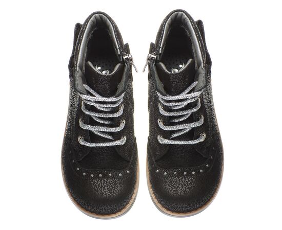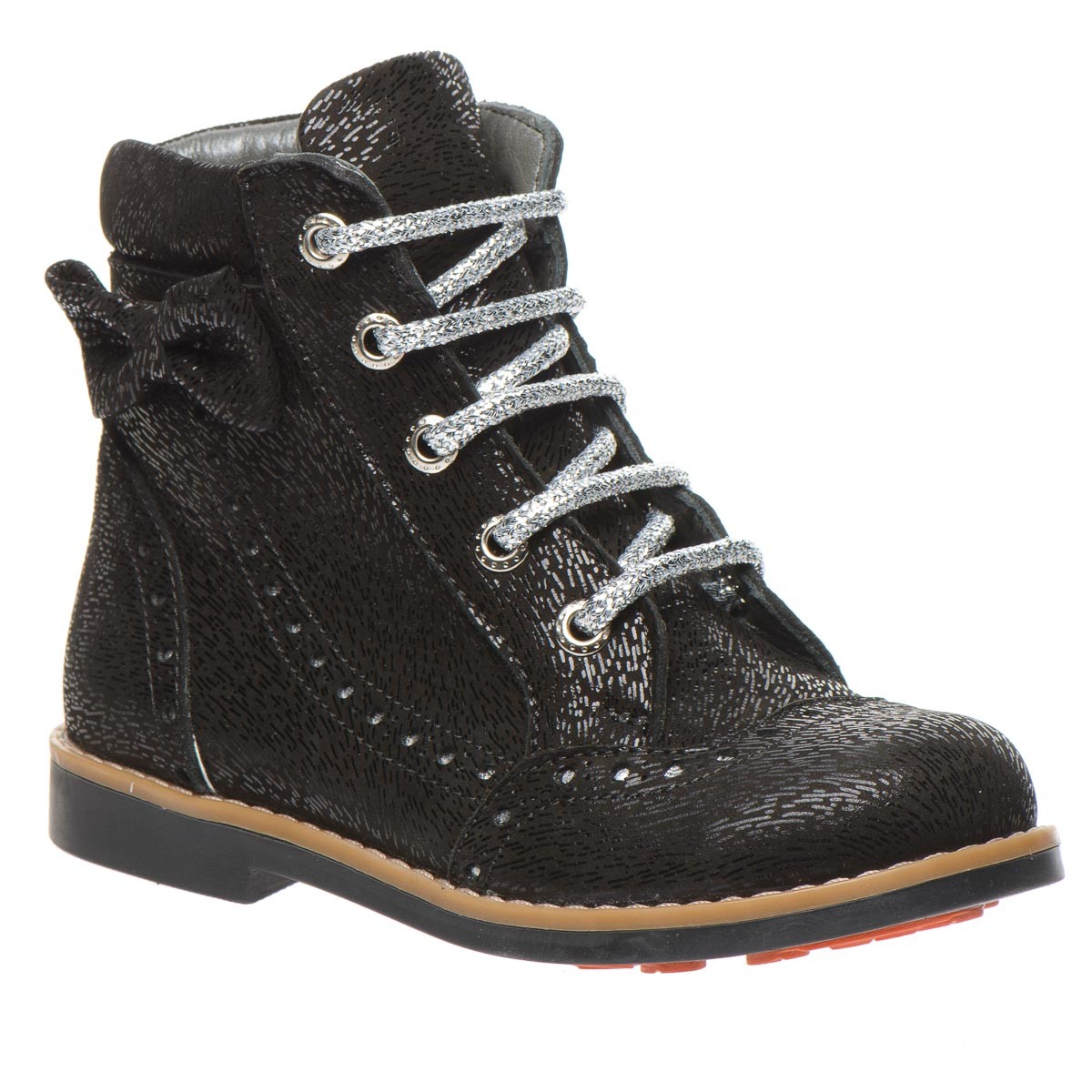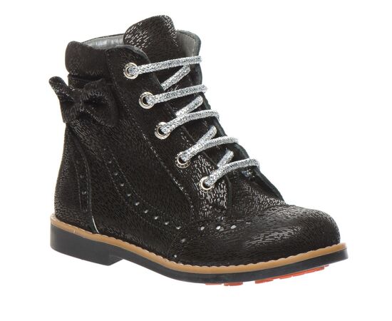 Theo Leo 0113 - комфортні демісезонні черевики з натуральної шкіри. Модель на блискавці, декорована шнурками сріблястого кольору і бантиком збоку. Устілка і підкладка - фліс. Тут є і анатомічний супінатор, і каблук Томаса, і гнучка нековзка підошва.