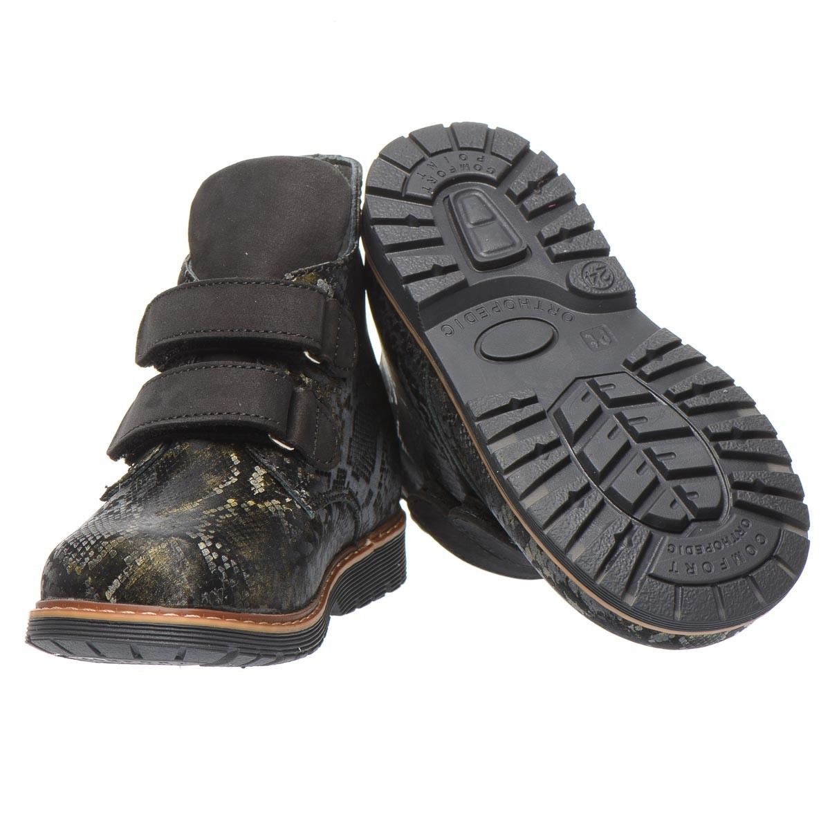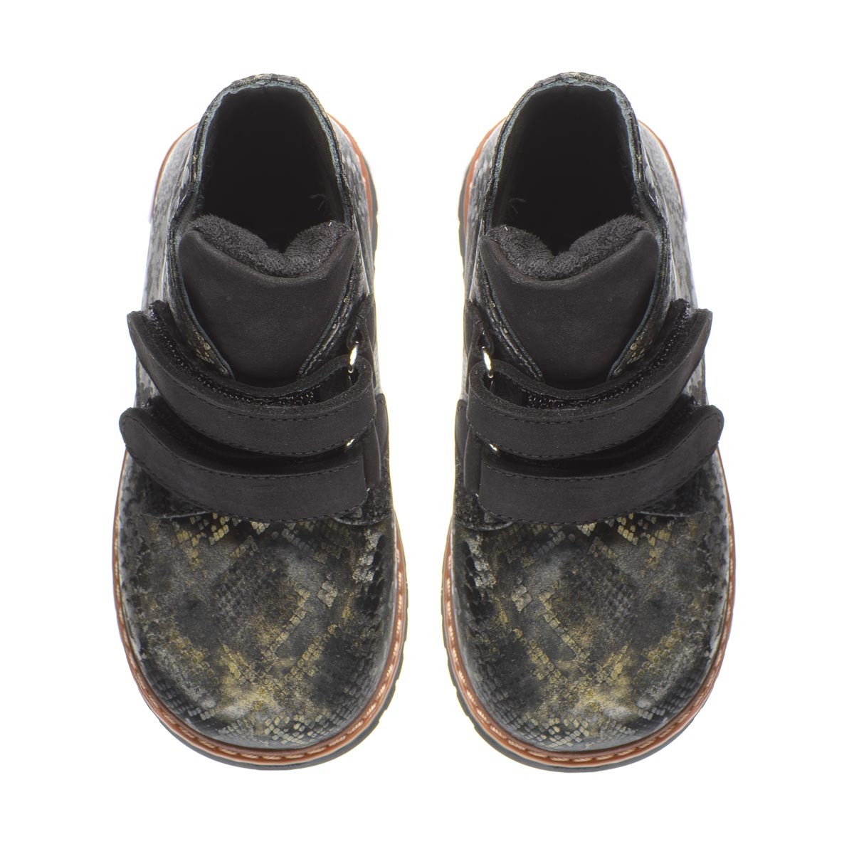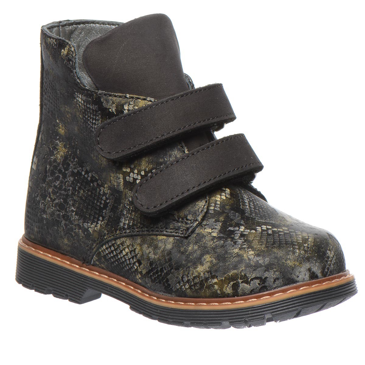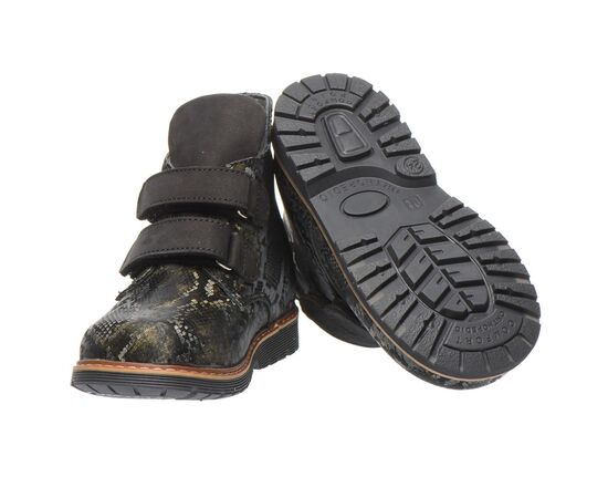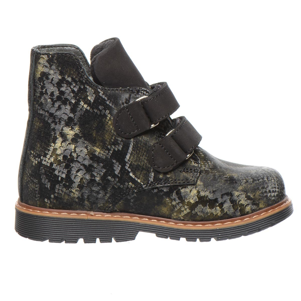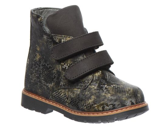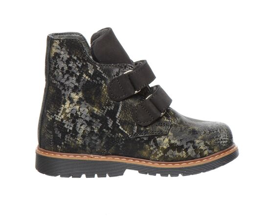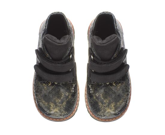 Theo Leo 0114 - комфортні демісезонні черевики з натуральної шкіри. Забарвлення "під змію". Модель на двох липучках для швидкого та комфортного процесу взування. Устілка і підкладка - фліс. Тут є і анатомічний супінатор, і каблук Томаса, і гнучка нековзка підошва.