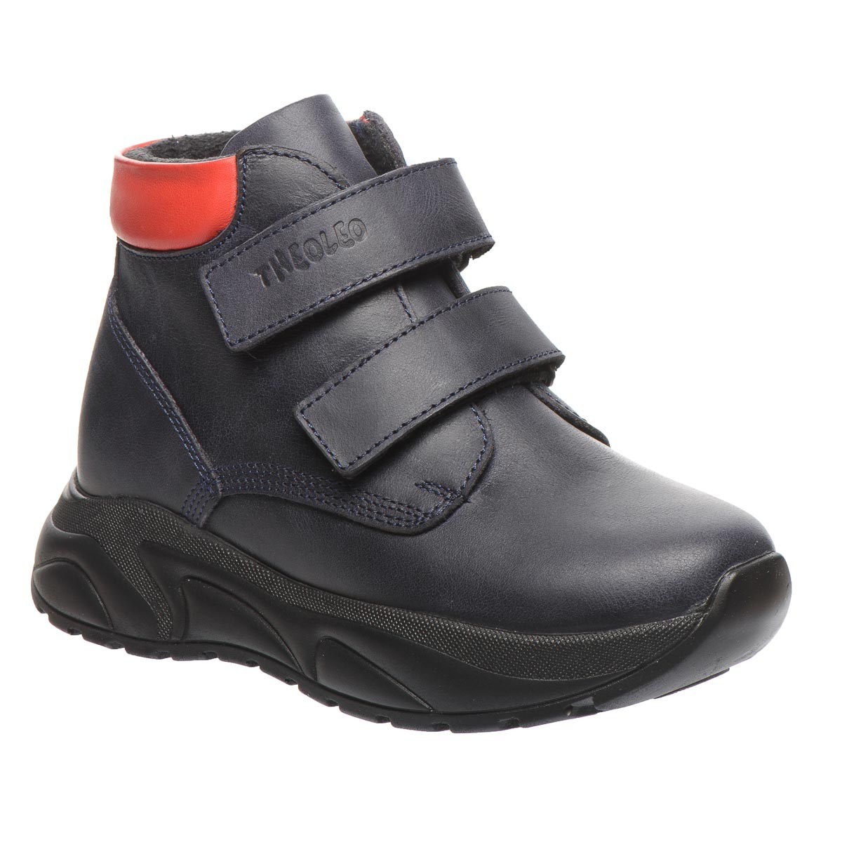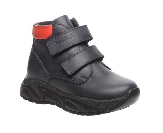 Theo Leo 0129 - черевики із натуральної шкіри на модній підошві. Устілка та підкладка – фліс. Є анатомічний супінатор. Модель на двох липучках, для швидкого та комфортного процесу взування. Модель декорована червоною вставкою на заднику. Підошва з термопластичної гуми, не ковзає та добре амортизує.