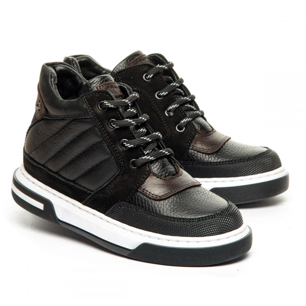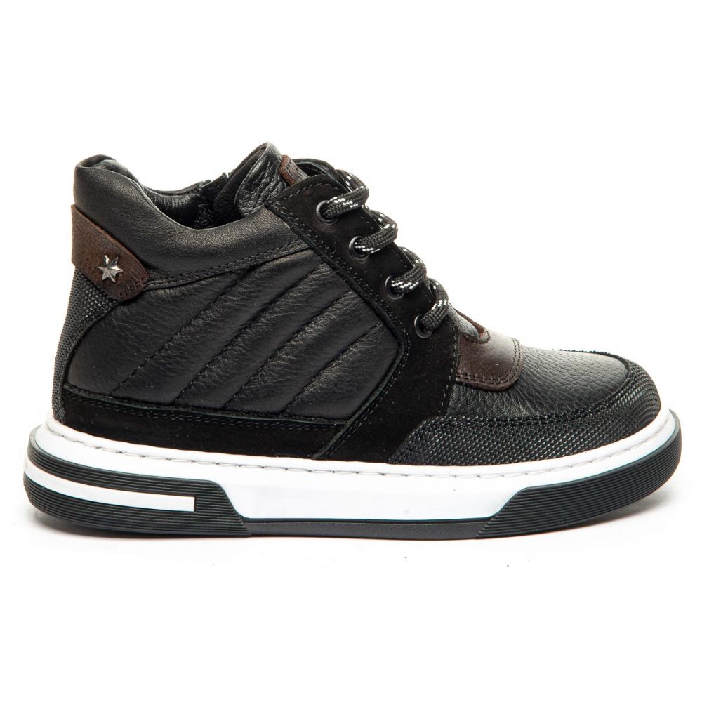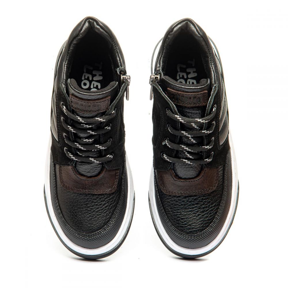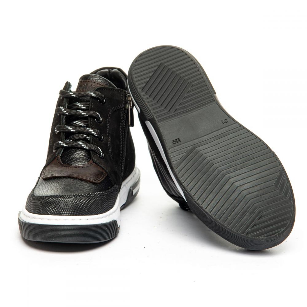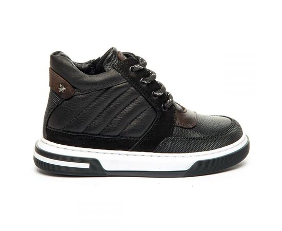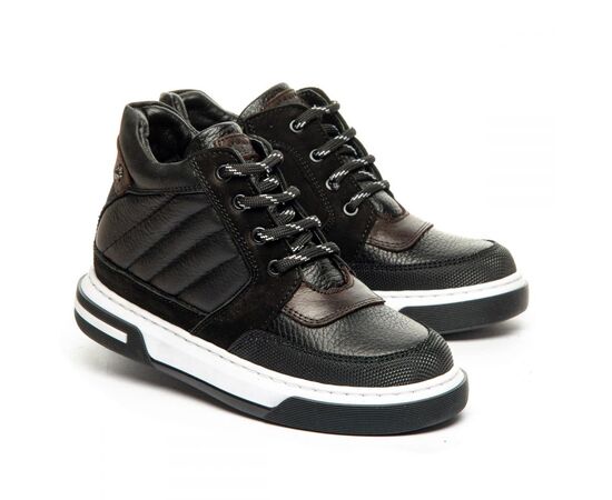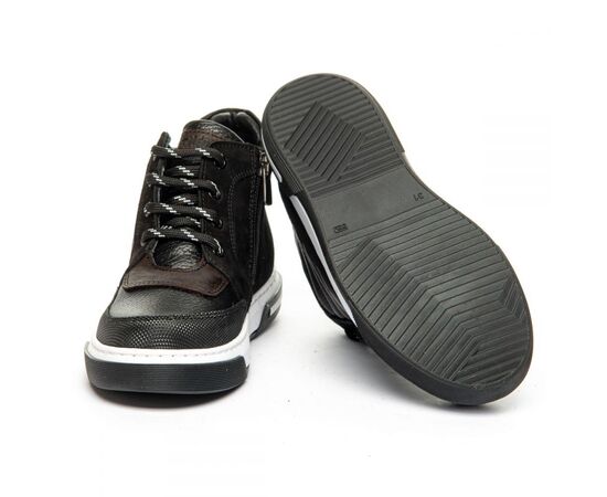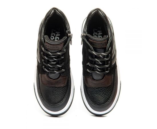Theo Leo 1366 - черевики з натуральної шкіри на модній двокольоровій підошві. Устілка і підкладка - фліс. Присутній анатомічний супінатор. Носок та задник укріплені матеріалом "невбивайкою". Модель на блискавці, декорована шнурками і вставками коричневого кольору. Підошва з термопластичної гуми, не ковзає і добре амортизує.