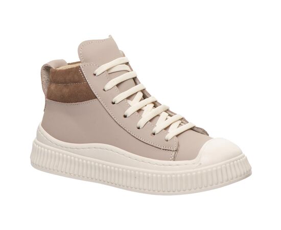 Theo Leo LEO-2651 профілактичні стильні дитячі черевики бежевого кольору. Вони поєднують в собі функціональність, комфорт і сучасний дизайн. Верх моделі виконаний із натуральної шкіри бежевого кольору. Контрастна вставка на носку плюс рельєф на підошві додають стилю і практичності. Зручна застібка-блискавка та шнурівка допомагає надійній фіксації на нозі. Підкладка з флісу створює комфорт і підтримує оптимальний мікроклімат. Підошва міцна з рельєфною текстурою та посиленим носком гарантує стійкість та амортизацію на кожному кроці.