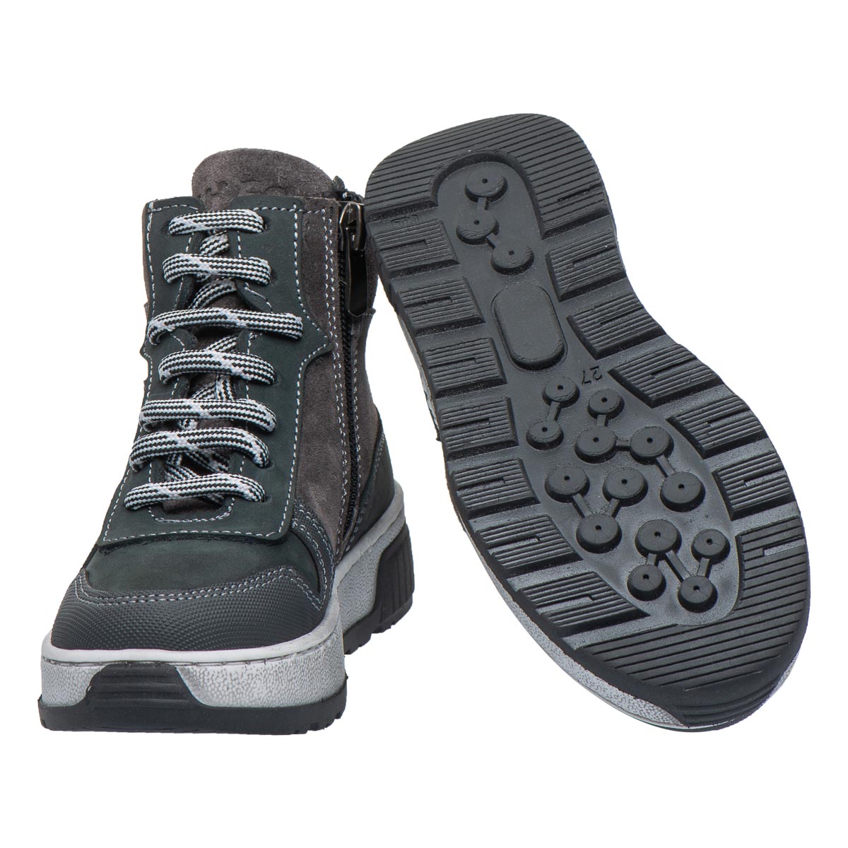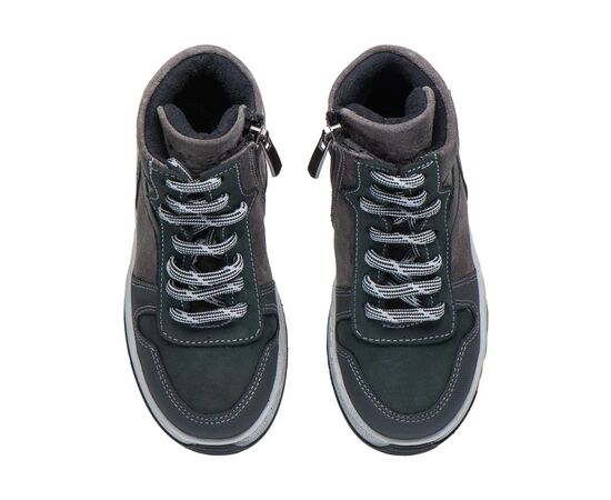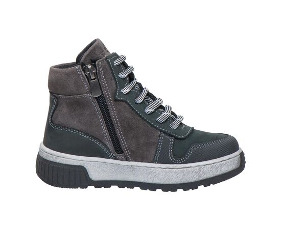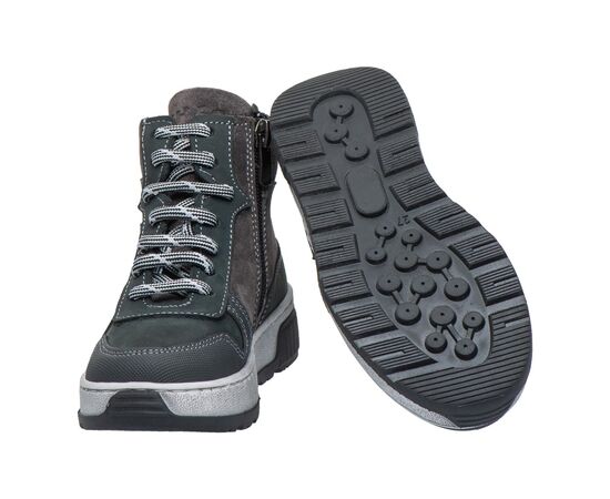 Theo Leo 3276 SA стильні дитячі профілактичні черевики графітового кольору, поєднують комфорт, міцність і сучасний дизайн. Мають зручну колодку, шкіряну устілку з анатомічним супінатором, що забезпечує правильне положення стопи та комфорт при ходьбі. Усередині — м’яка флісова підкладка, яка дарує тепло й комфорт. Підошва з укріпленим носком стійка до зношування та надійно захищає взуття під час активних ігор. Комбінація шнурівки доповнена бічною блискавкою, що значно полегшує процес взування — це зручно як для дітей, так і для батьків. Ідеально підходять для активного щоденного використання в осінньо-весняний період.