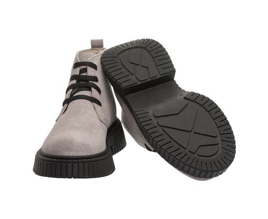 Theo Leo G325 SA GR надзвичайно стильна та актуальна модель черевик для юних модниць. Ефектні дитячі демісезонні черевики для дівчинки пошиті з натурального нубуку світло сірого кольору з високою рифленою чорною підошвою. Створені для комфортних буднів та приємних осінніх прогулянок. Всередині черевики утеплені флісом, мають шкіряну устілку. Головними комфортними елементами моделі є твердий задник, анатомічно правильна устілка з подушечкою під зведення стопи. Застібка - шнурівка дозволяє відрегулювати повноту ніжки та забезпечить її надійну фіксацію.