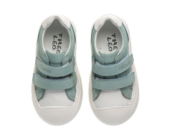 Тheo Leo 3449 TUR стильні кеди з натуральної блакитної шкіри з високою якістю виконання. Виготовлені із натурального нубуку, ніжного блакитного кольору, декоровані контрастними вставками з білої шкіри, що робить модель універсальною та стильною. Підкладка та устілка виконана з високоякісної шкіри для комфорту ніжок дитини. Підошва із захисним носочком, легка додає зручності та стабільності при кожному кроці. Зручні застібки на липучках дозволяють легко взувати та знімати взуття, надійно фіксуючи його на ніжці.