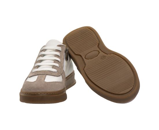 Theo Leo 3369/K WH-BEIG сучасні кеди які поєднують сучасний дизайн і високу якість матеріалів. Простий і лаконічний дизайн робить цю модель універсальною та придатною до будь-якого гардероба. Модель виготовлена з натуральної білої шкіри, елегантно декорована контрастними вставками з коричневої замші з боків, а також сірою замшею на носку та п’ятці, що додає моделі виразного вигляду. Підкладка та устілка повністю виконана з високоякісної шкіри для додаткового комфорту та довговічності. Підошва: легка, додає зручності та стабільності під час ходьби, двоколірна, з вираженим протектором для гарної амортизації. Класична шнурівка забезпечує надійну фіксацію взуття на нозі. Ця модель стане у нагоді для прогулянок, активного відпочинку та для щоденного використання, доповнюючи стильний образ.