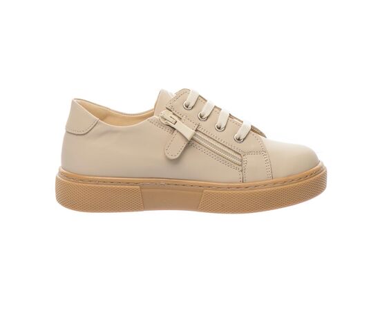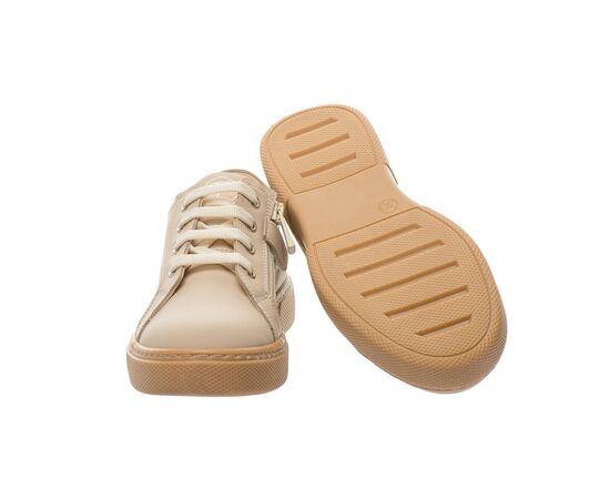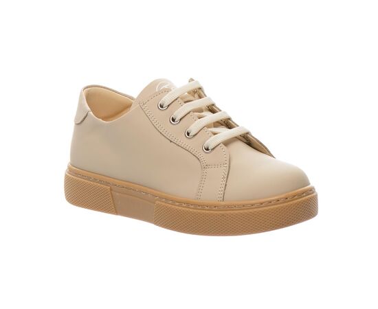 Theo Leo 1938 - кеди з натуральної шкіри на коричневій підошві. Модель на шнурках, бежевого кольору. Устілка з анатомічним супінатором і підкладка виконані з натуральної шкіри. Підошва - термопластикова гума, рифлена, не ковзає і амортизує.