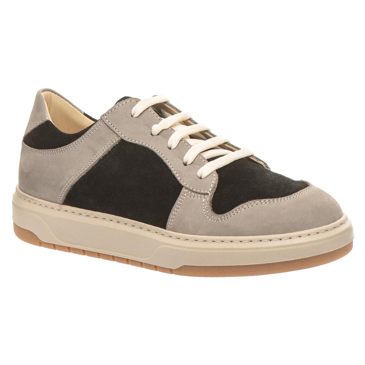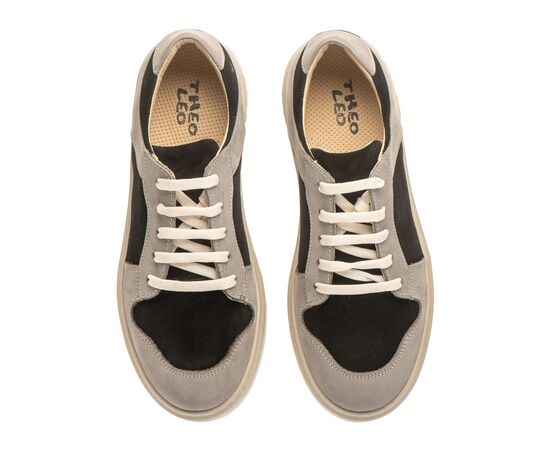 Theo Leo 3236 SM-WH профілактичні кеди для хлопчика, надзвичайно стильна частина іміджу дитини. Дитячі кеди пошиті в контрастній комбінації натуральної шкіри нубук чорно-сірих кольорів, порадують власника абсолютним комфортом. Підошва в кедах надзвичайно легка, світлого кольору, по периметру прошита.