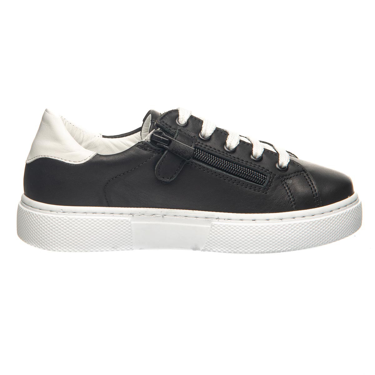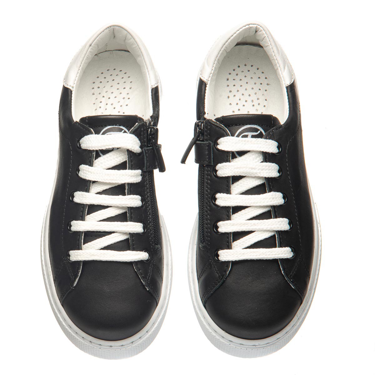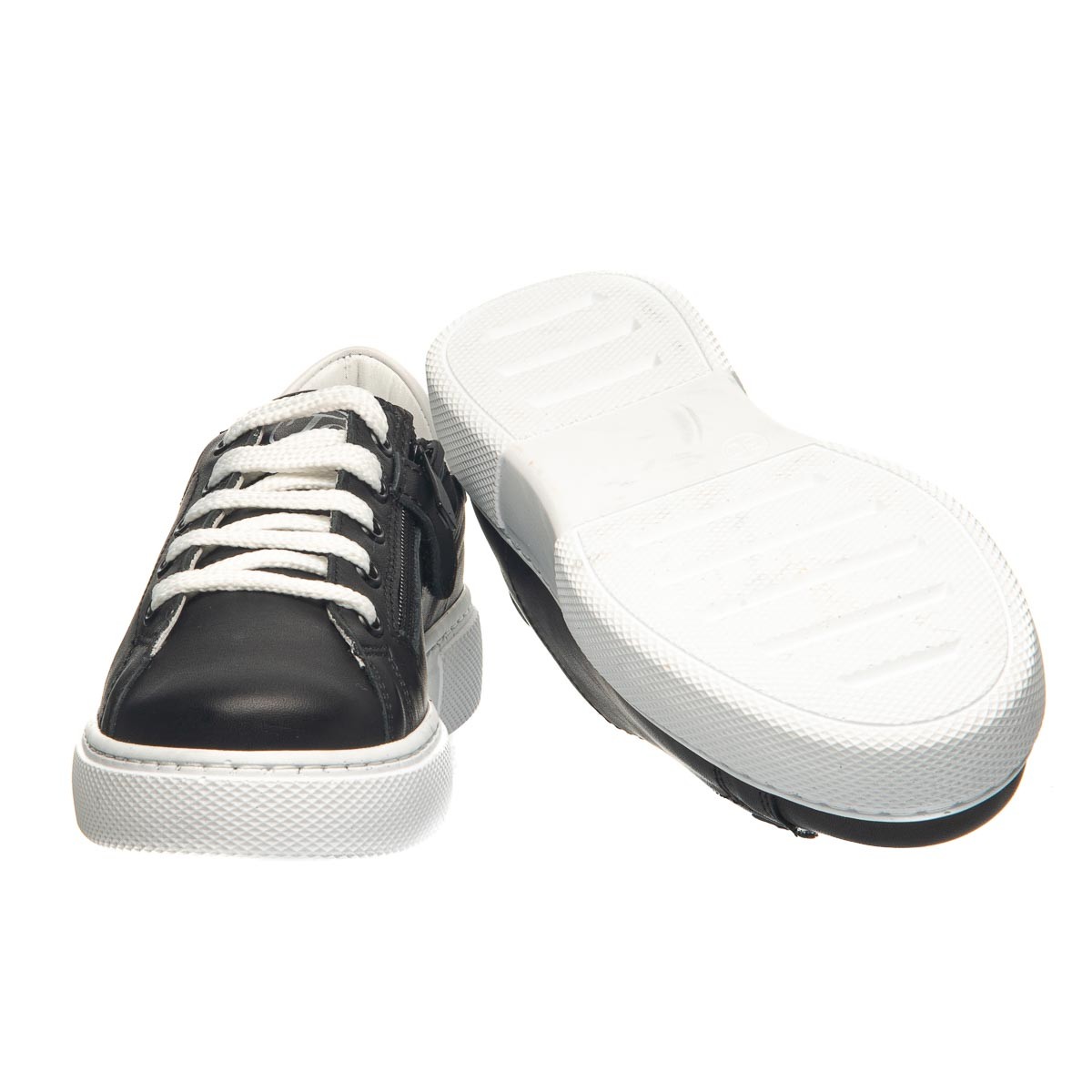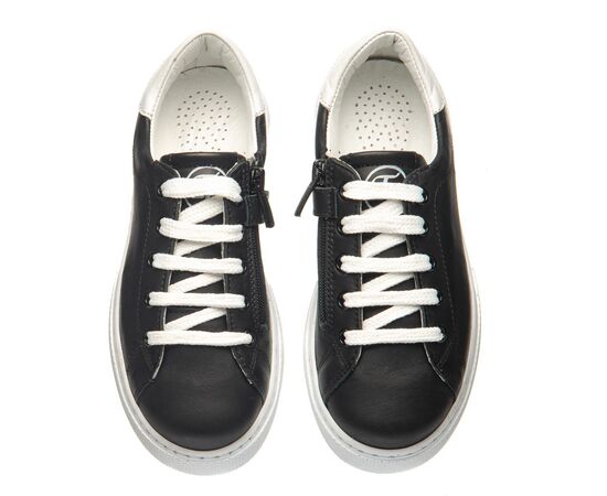 Theo Leo 0087 - кеди з натуральної шкіри на білій підошві. Модель на блискавці, декорована шнурками та білою вставкою на заднику. Устілка з анатомічним супінатором і підкладка виконані з натуральної шкіри. Підошва - термопластикова гума, рифлена, не ковзає і амортизує.