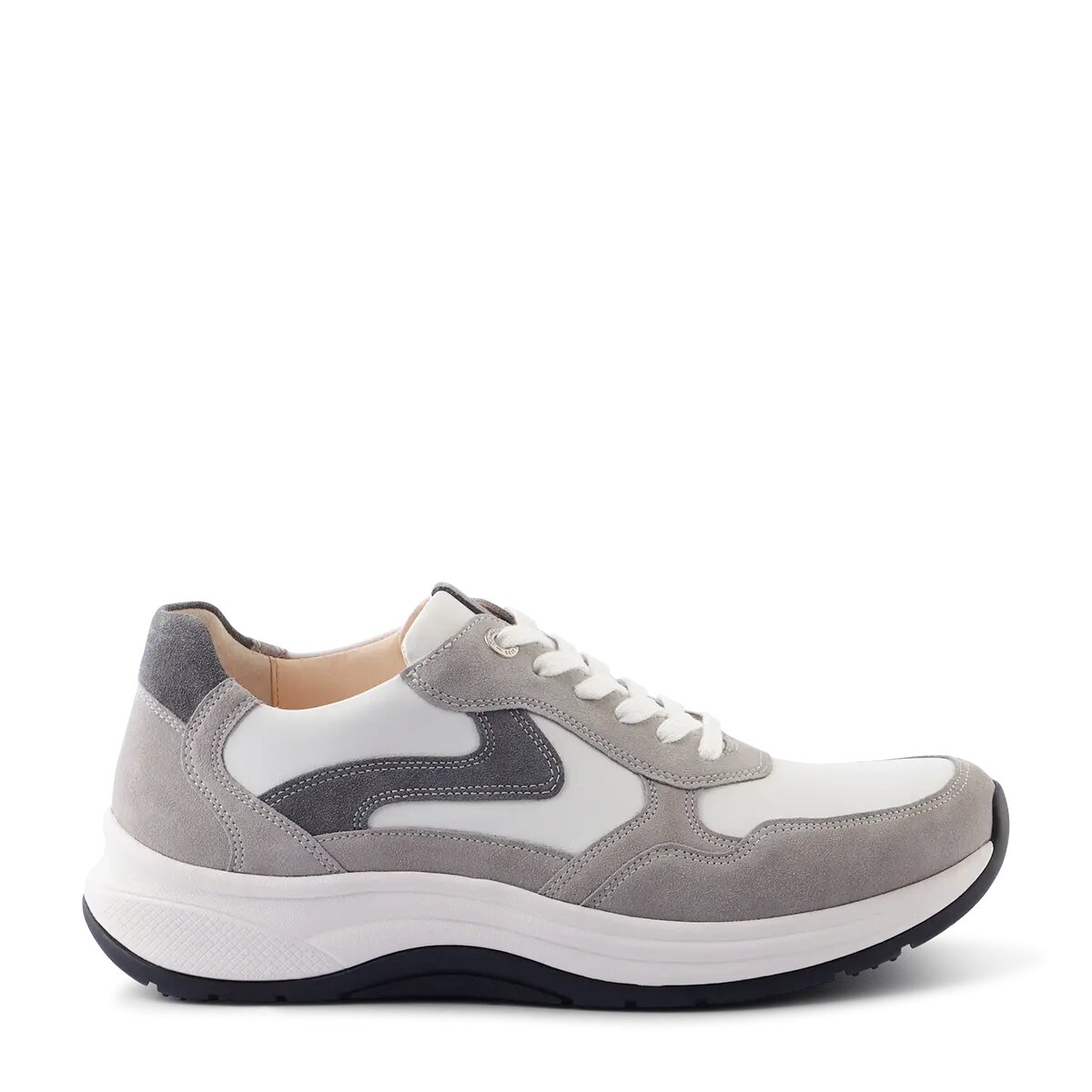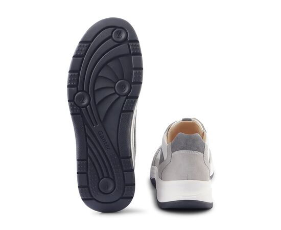 Запатентована технологія кочення підтримує кожен крок, а сіро-біле поєднання матеріалу та кольорів підкреслює повсякденно-крутий вигляд взуття, яке супроводжуватиме вас як вдень, так і ввечері. Продумані деталі декору, такі як на п'яті, доповнюють дизайн. Підошва з 4-точковим перекатом відчувається на нозі легко і м'яко, покращує поставу і знімає навантаження зі спини і суглобів. Під час носіння ви відчуєте активуючий масажний ефект, що дасть вам змогу робити довші прогулянки легко та з комфортом. Концепція AKTIV може не тільки полегшити та запобігти болю в опорно-руховому апараті, але й зменшити стрес. Спробуйте та зробіть крок у майбутнє з GANTER AKTIV!