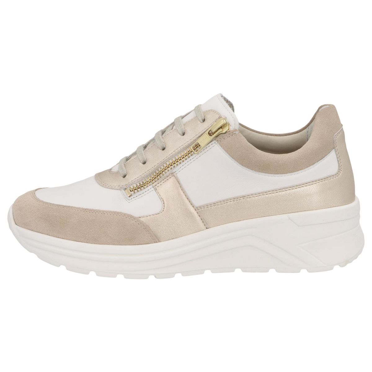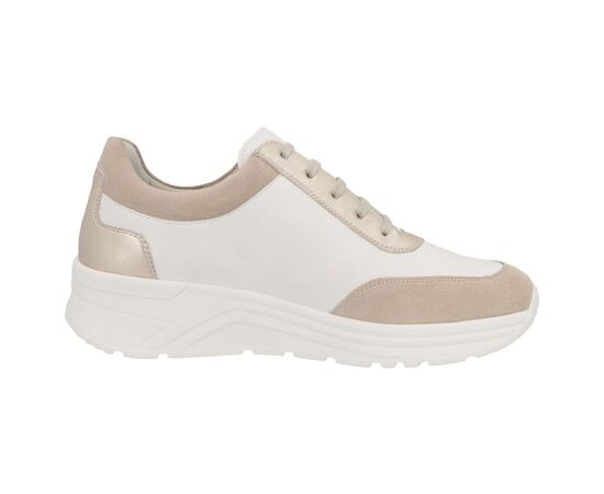 Кросівки Solidus Holly бежевого кольору з білими вставками, на високій підошві широкою повнотою (Повнота Н) стильні та комфортні, ідеально підходять як взуття на кожен день. Завдяки шнурівці це взуття можна оптимально підігнати по нозі. А практична блискавка дає можливість з легкістю вдягати та знімати взуття. Додасть завершальний штрих до вашого образу. Відмінно підійдуть для весни чи осені.