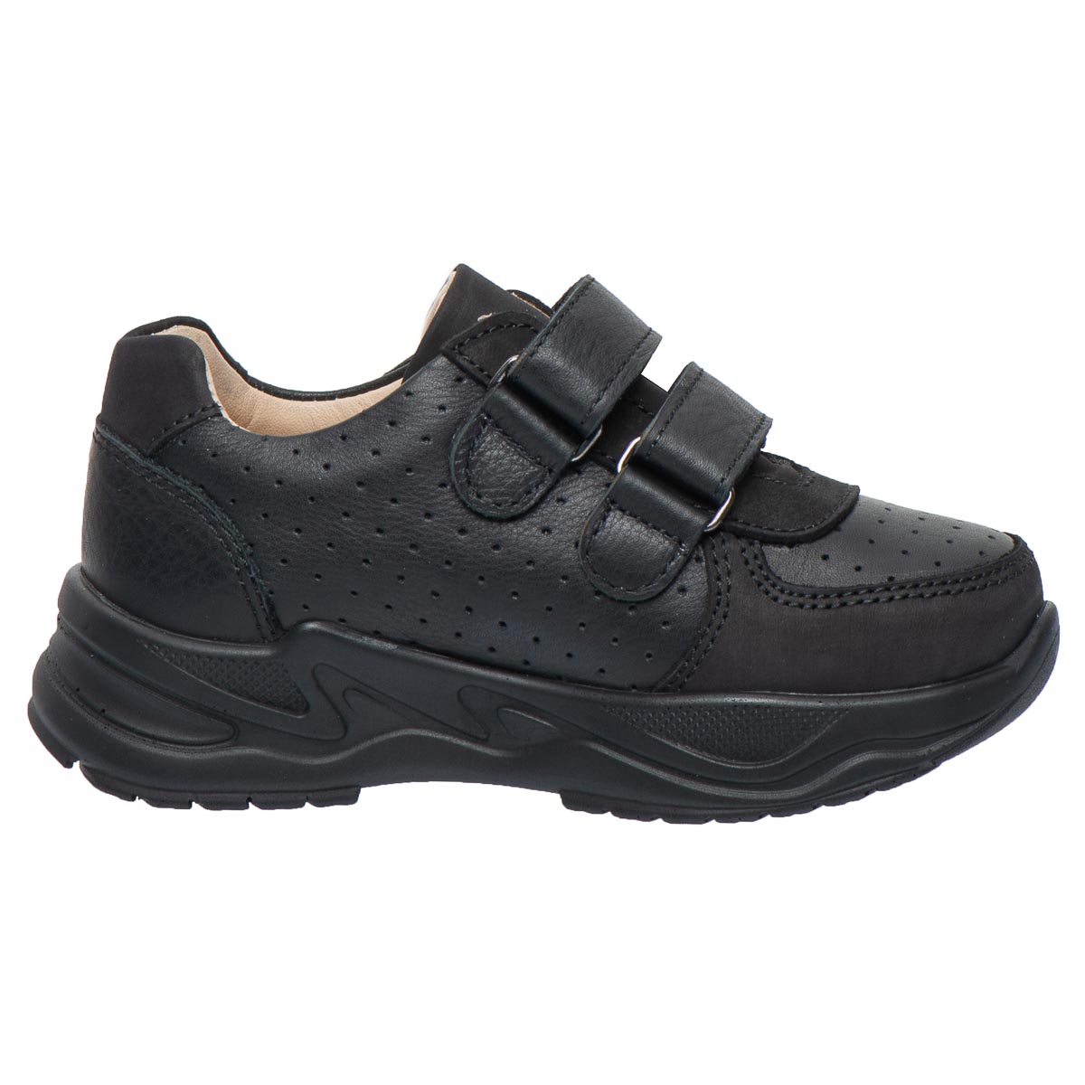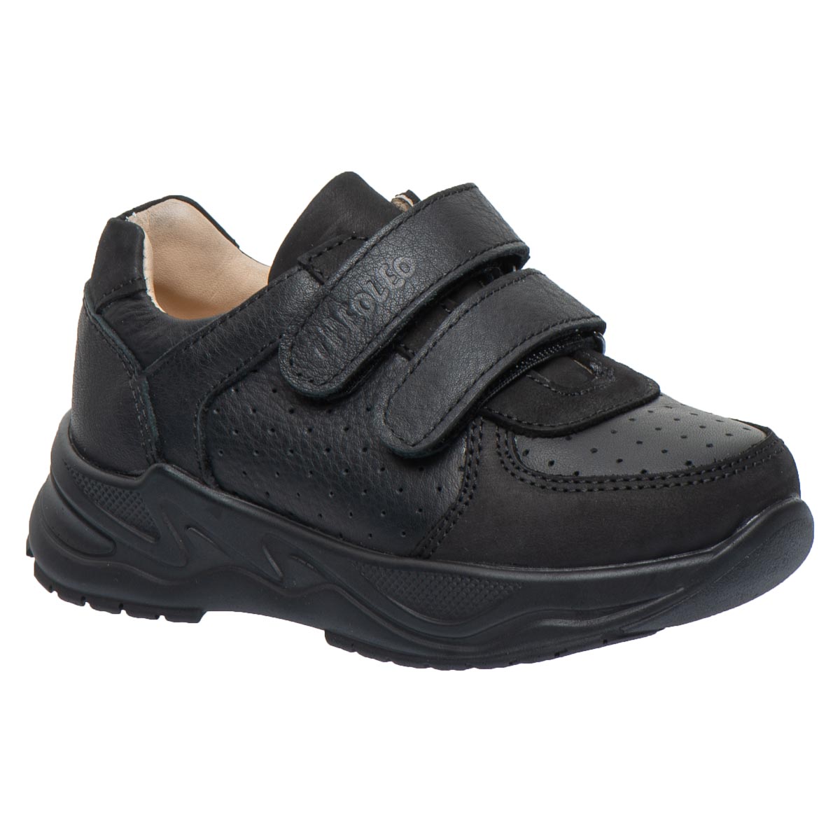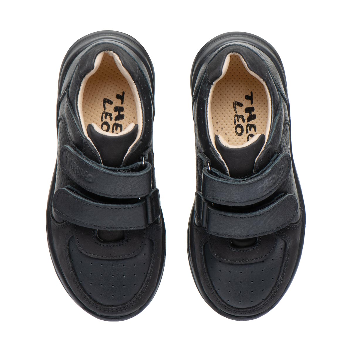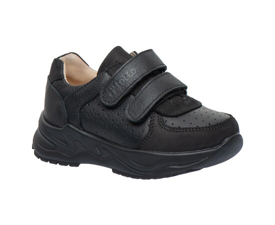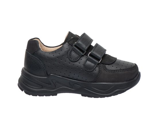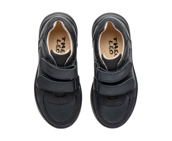 Дитячі кросівки Teo Leo створені спеціально для активних дітей, які цінують комфорт та надійність у повсякденному взутті. Вони виконані з натуральної шкіри на контрасті гладкої шкіри нубук та шкіри з перфорацією у верхніх шарах. Виконані в класичному чорному кольорі, що робить модель універсальною — підходить як для школи, так і для прогулянок. Завдяки зручним липучкам взуття легко одягати й знімати, а щільна фіксація забезпечує правильне положення стопи.