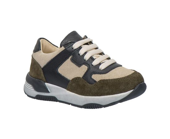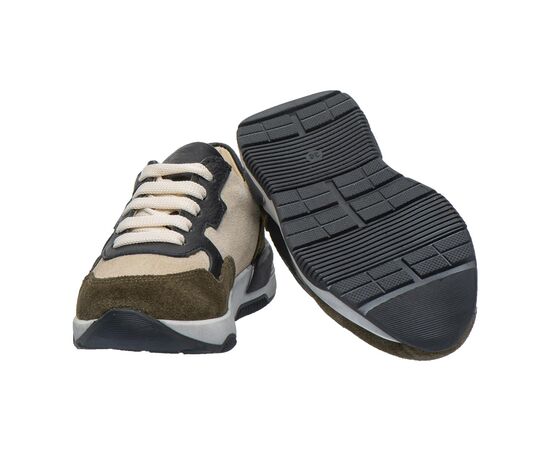 Theo Leo LEO-3464 стильні кросівки у сучасному міському стилі. Поєднання замші та натуральної шкіри створює цікавий контраст текстур, гарантує довговічність та гарну вентиляцію. Верх виконаний у комбінованій гамі — бежевий, оливковий та чорний кольори. Світла підошва з темними вставками надає взуттю спортивного характеру. Модель має класичну шнурівку, що дозволяє добре фіксувати стопу.