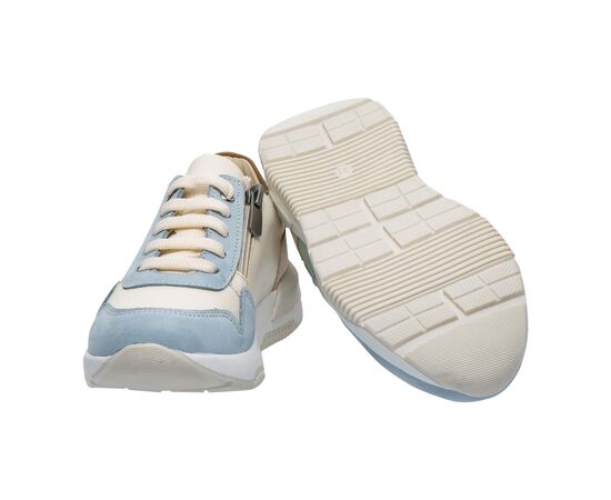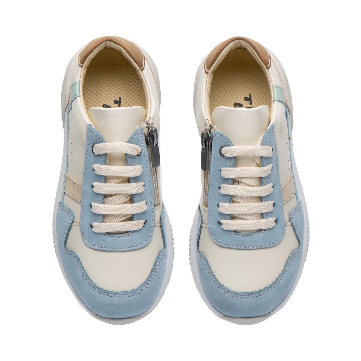 Theo Leo LEO-3466 у світлій пастельній гамі, що поєднують ніжність кольорів та сучасний дизайн. Верх виконаний із натуральної шкіри та замші у відтінках кремового, небесно-блакитного, м’ятного та бежевого кольору. Завдяки такій комбінації взуття виглядає свіжо й універсально, ідеально підходить для весняно-літнього сезону. Легка біла підошва з амортизацією забезпечує комфорт при ходьбі, а класична шнурівка дозволяє зручно регулювати посадку.