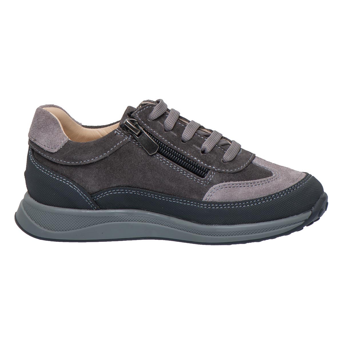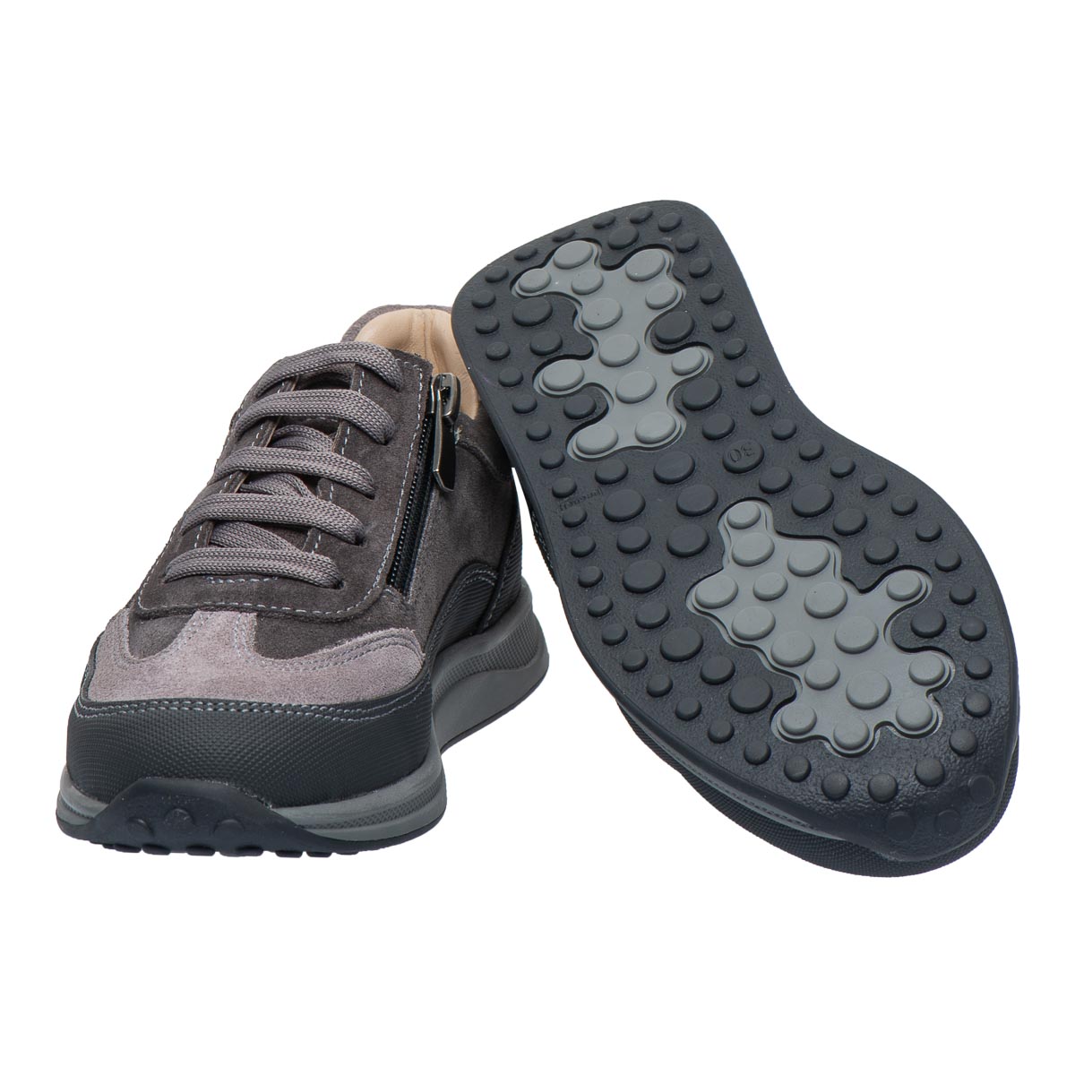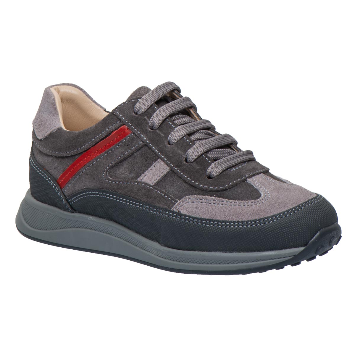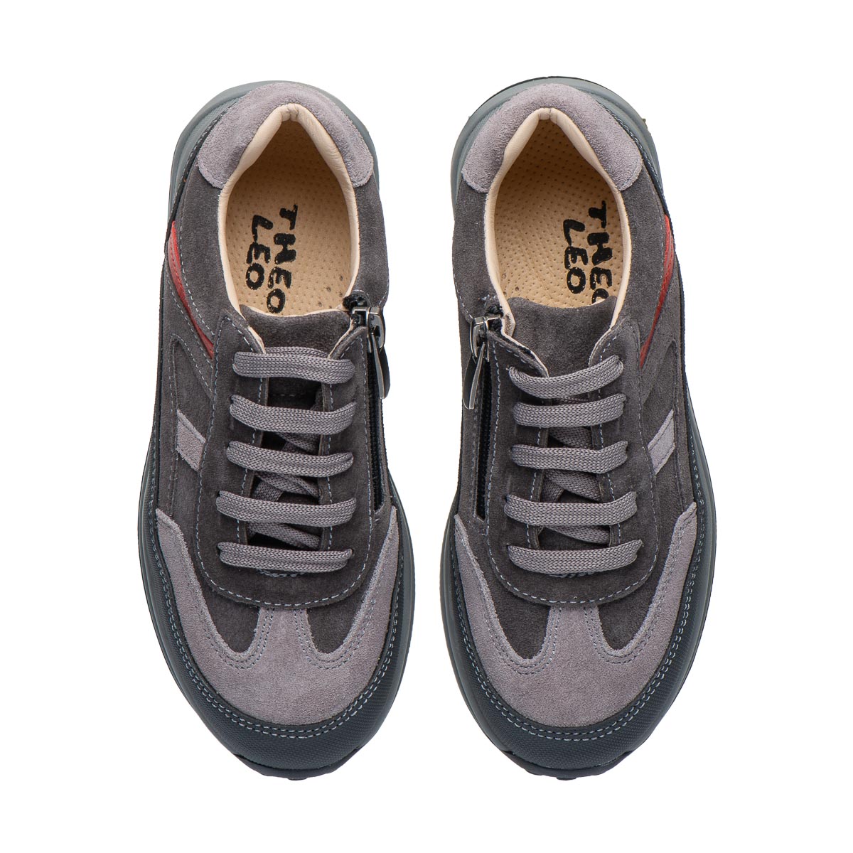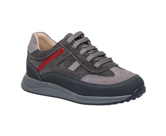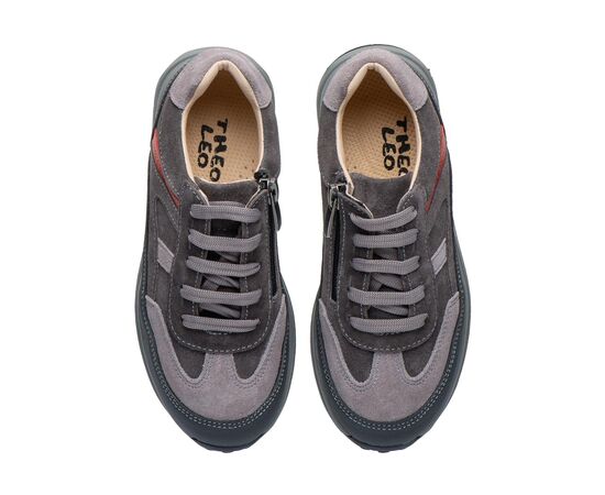 Theo Leo LEO-3426 профілактичні надійні, стильні та зручні кросівки у сучасному дизайні. Вони виготовлені із натуральної замші, що забезпечує м"якість і комфорт. Додатковий захист носка і п’ятки «неубивайка» робить модель ще більш довговічною, а бічна блискавка полегшує процес взування. Стильне поєднання модних різних відтінків сірого з контрастними червоними деталями надає кросівкам сучасний і універсальний вигляд, який підійде як для прогулянок, так і для школи.