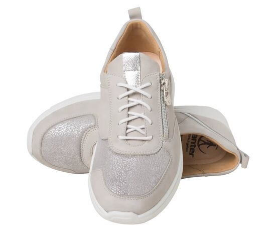 Ортопедичні кросівки GANTER Kira поєднання сучасного силуету кросівок із функціональністю. Модель серії Ganter Sensitive має красиво підкреслений носок, який надає їй динамічного вигляду. Ширина K розроблена для ширших ніг, особливо для тих, кому потрібен додатковий простір на подушечках стопи та в області пальців. Блискучі еластичні вставки не тільки візуально привабливі, але й забезпечують додатковий простір. Це ідеальне взуття для людей з чутливими ногами. Взуття забезпечує простір для ніг, як по довжині, так і по висоті. Виготовлені з оксамитової нубукової шкіри, кросівки є надійним повсякденним супутником у будь-який сезон – ідеально поєднуються з літніми лляними штанами для походу по магазинах у місті або модними кюлотами для вашої наступної садової вечірки. Функціональна підкладка Sensitive пом'якшує дотик до ноги, а її спеціальна обробка має антимікробний ефект і запобігає появі неприємного запаху. Блискавка дозволяє миттєво взути ці зручні кросівки, а регульовані шнурки забезпечують додаткову підтримку. Підходить людям, що страждають на діабет і ревматизмом. Комфорт приносить радість руху.