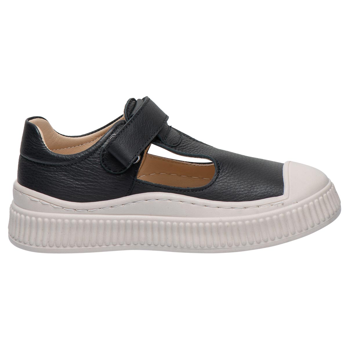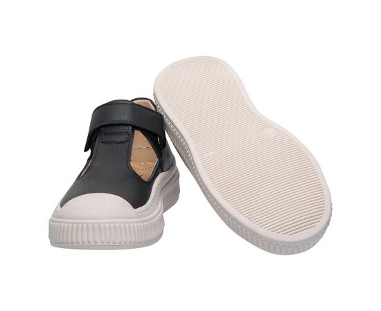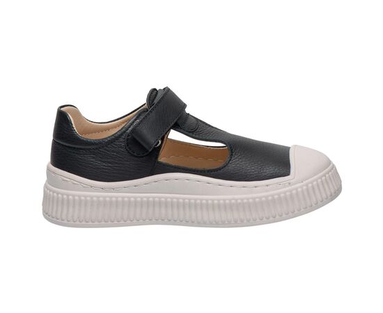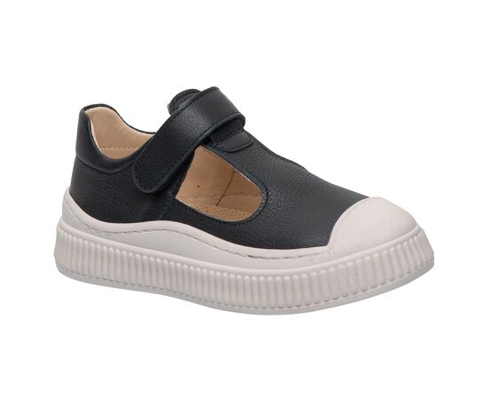 Стильні дитячі мокасини TeoLeo для дівчинки, у чорному кольорі з контрастною білою підошвою поєднують комфорт, легкість та сучасний дизайн. Виготовлені з натуральної шкіри, легка підошва доповнена захисним носком, що гарантує додаткову стійкість і захист від механічних пошкоджень. Відкрита модель із вирізом та ремінцем на липучці забезпечує надійну фіксацію та зручність у використанні. Завдяки міцній підошві та захищеному носику взуття ідеально підходить для щоденного носіння, прогулянок чи школи.