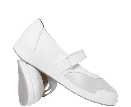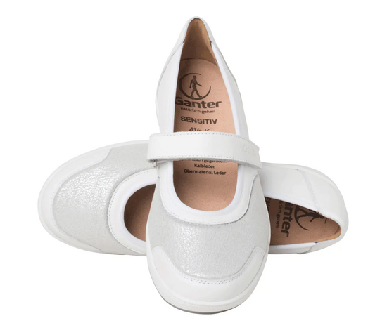Ортопедичні мокасини GANTER Klara - спортивний дизайн зустрічається з повсякденним шиком – балетки KLARA поєднують елегантні матеріали з жіночними деталями, такими як ніжно мерехтливі еластичні вставки Glossystretch. Ширина K забезпечує достатньо місця для стопи, проте KLARA може похвалитися чистим силуетом, який ніжно та привабливо підкреслює стопу. Джинси чи сукня – яку річ зі свого гардеробу ви поєднаєте з цими світло-бежевими балеринками? Підошва кольору тону з тонкими канавками надзвичайно легка та нековзка. В рамках колекції SENSITIVE це взуття має спеціальну підкладку, яка неймовірно комфортна для стопи завдяки своїй амортизації. Шар з мікрофібри-флісу має сріблясте покриття, яке є антибактеріальним та сприяє повітропроникності. Наш вердикт: KLARA має потенціал стати вашим новим улюбленим взуттям! Це ідеальне взуття для людей з чутливими ногами. Підходить людям, що страждають на діабет і ревматизмом.