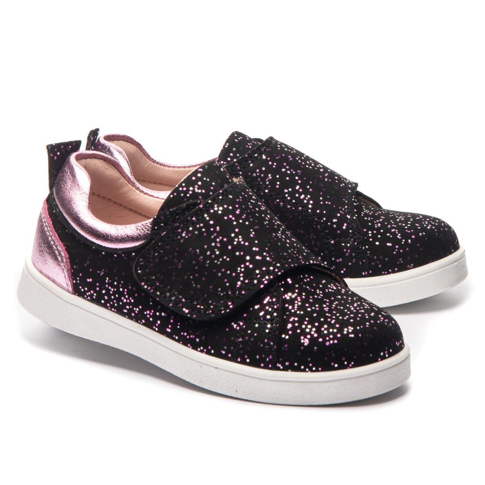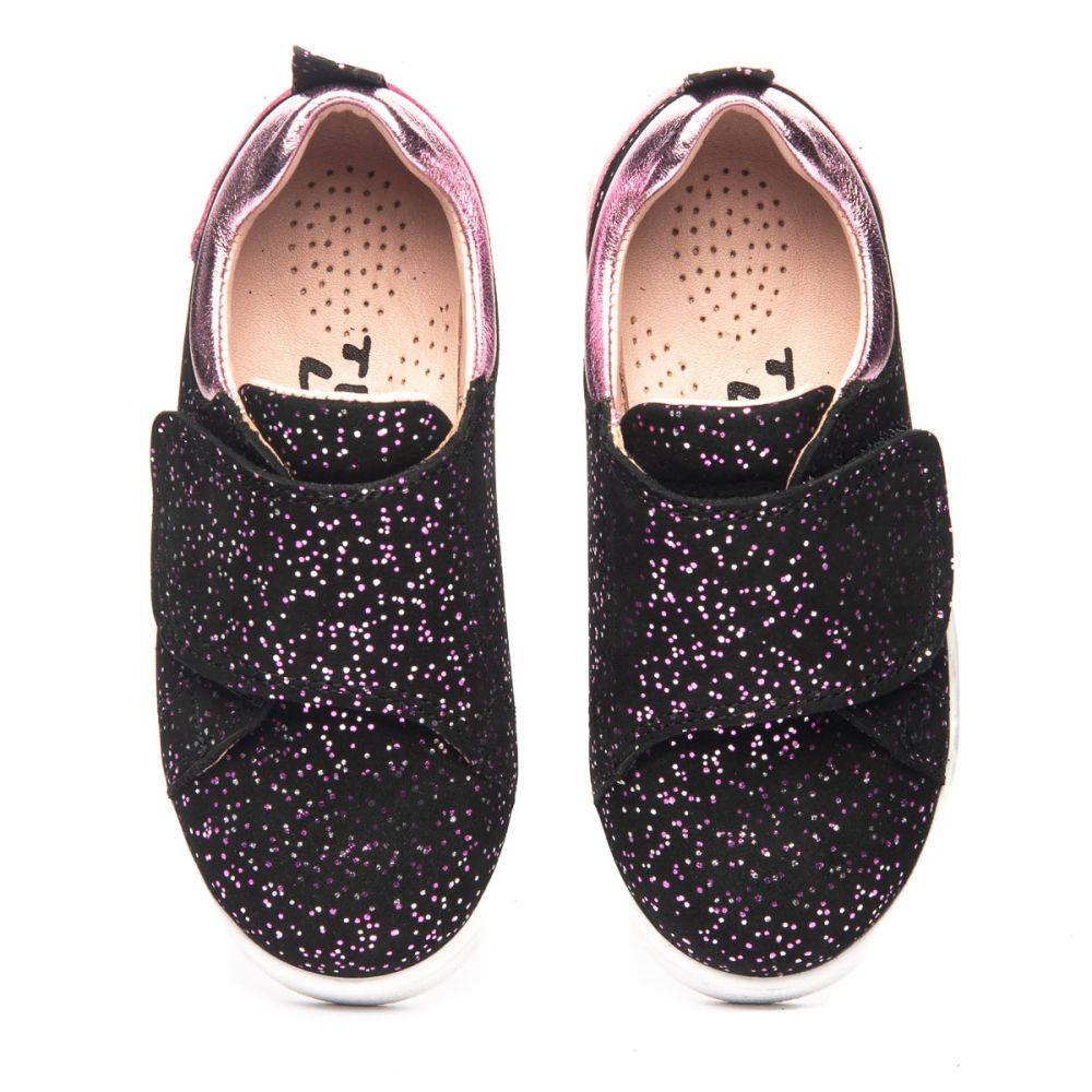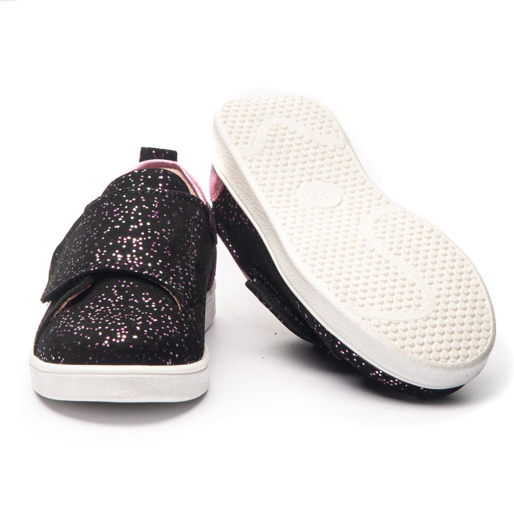 Theo Leo 1336 - яскраві мокасини з натуральної шкіри на білій підошві. Модель декорована липучкою з яскравими паєтками для швидкого і комфортного процесу взування.