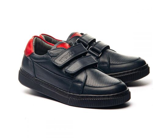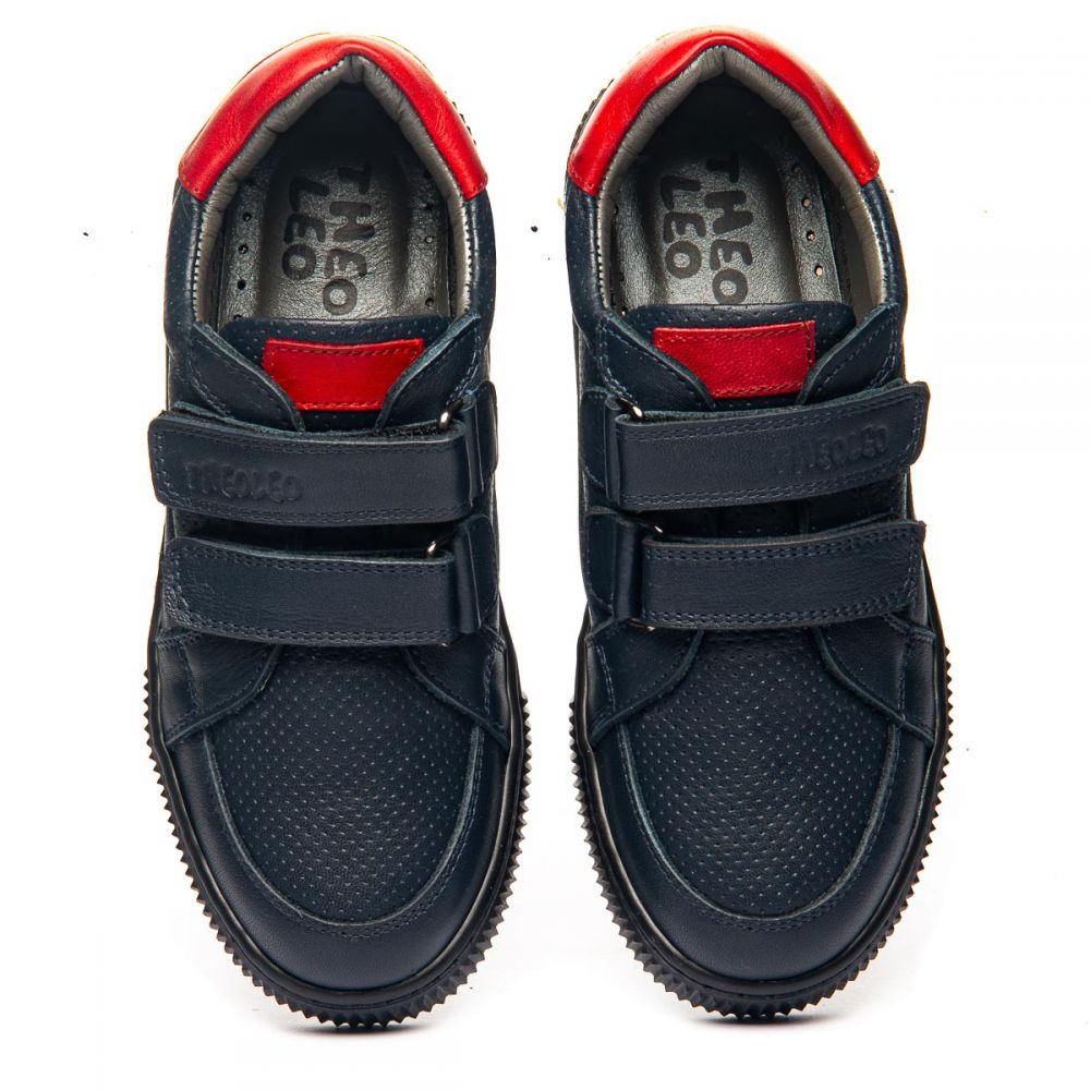 Theo Leo 1323 - мокасини для хлопчика з натуральної шкіри. Модель на двох липучках, для швидкого і комфортного процесу взування. Модель прикрашена червоною вставкою на заднику і язичку. Підкладка та устілка з анатомічним супінатором - натуральна шкіра. Підошва - термопластичная гума, не ковзає і добре амортизує.
