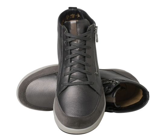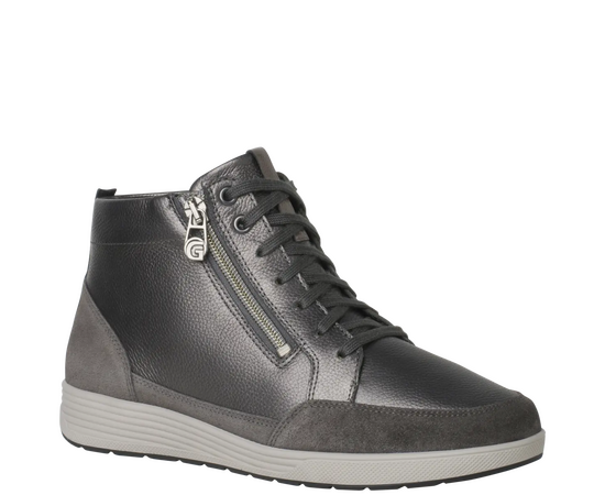 Ортопедичні черевики Klara Ganter з серії Sensitiv м'які і комфортні, спортивний дизайн поєднується з повсякденним шиком, з вишуканими деталями, такими як делікатні бавовняні шнурки та застібка-блискавка, створені спеціально для дуже чутливих ніг (без швів, які давлять та зі спеціальною м'якою устілкою). Ширина K дає нозі достатньо простору, щоб вона могла розгорнутися відповідно до своєї природи під час ходьби. Черевики Klara завдяки чистому силуету, ніжно та вигідно підкреслюють стопу. Комфортне взуття до щиколотки вражає простою гладкою шкірою з додатками з нубуку та ідеально поєднується з джинсами, трикотажними сукнями чи шкіряними куртками. Контрастна за кольором підошва з рифленим виглядом особливо легка та не ковзає.