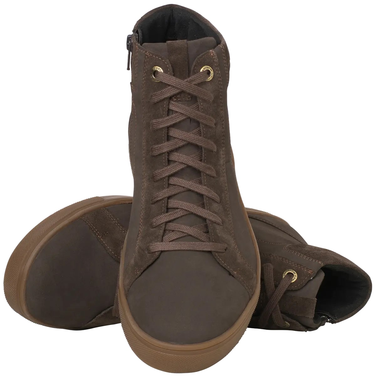 Повсякденні та модні черевики від Ganter Henning надзвичайно легкі, вирізняються контрастом між темно-коричневою шкірою та підошвою медового кольору. Модна чашеподібна підошва надає взуттю сучасного вигляду, забезпечуючи чудове зчеплення з різними поверхнями. Стильні аплікації і акуратні шви створюють яскраві акценти і роблять Henning справжнім магнітом для поглядів. Практична блискавка з внутрішньої сторони дозволяє швидко взувати і знімати взуття, а піднятий каблук забезпечує стабільність. Високоякісна шкіра гарантує комфорт при носінні, так що ви зможете впевнено і зручно ходити в цих ботильйонах кожен день. Натуральна лоденова підкладка забезпечує приємний клімат для ніг, анатомічна змінна коркова устілка, покрита лоденом. Взуття винотовлене для широких та чутливих стоп, також ідеально підходить для діабетиків та ревматиків.