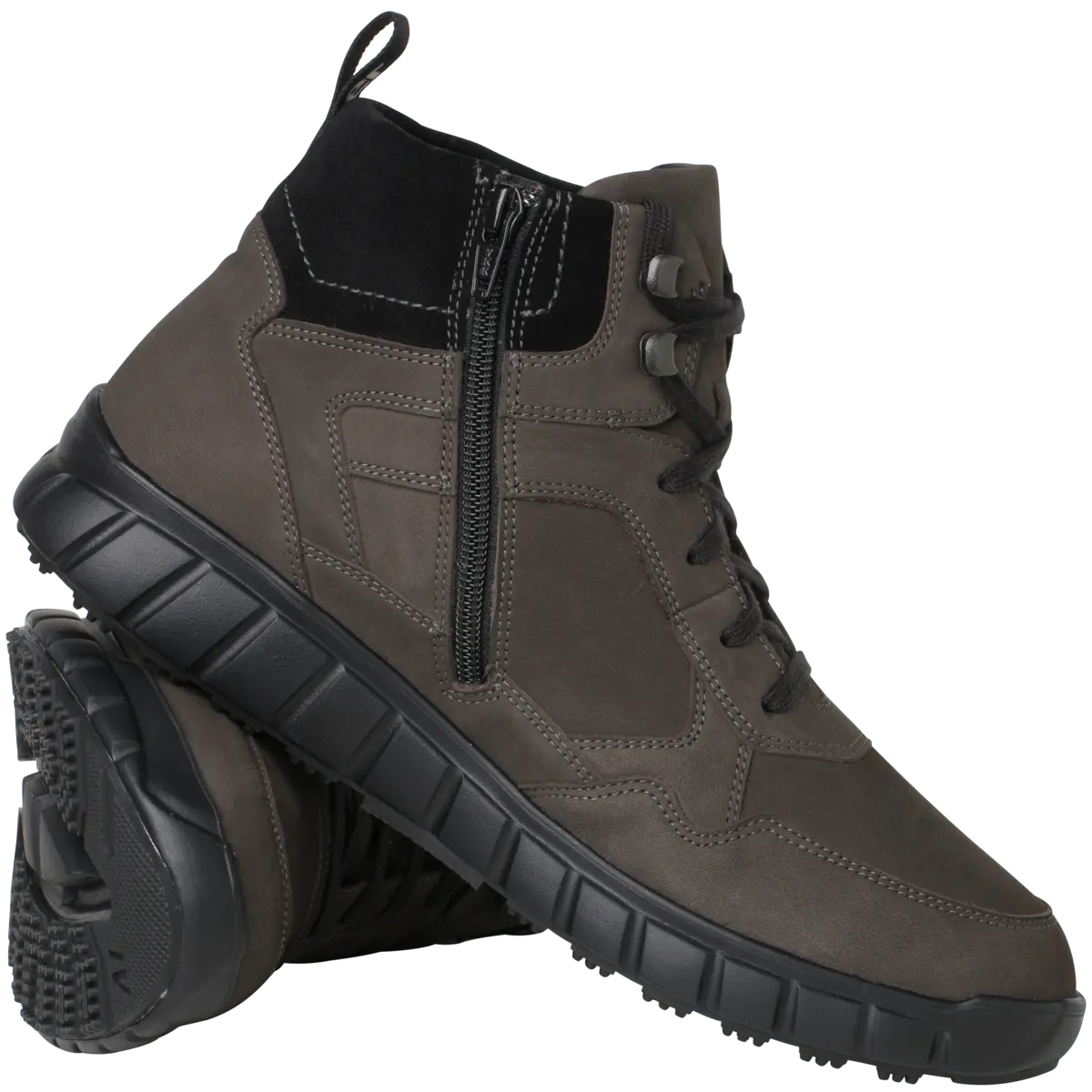 Високий і стійкий задник забезпечує ідеальну підтримку п'яти, тоді як пальці ніг мають достатньо місця в області передньої частини стопи. Шнурівка забезпечує підтримку стопи та доповнена блискавкою з внутрішньої сторони для зручного одягання та знімання.