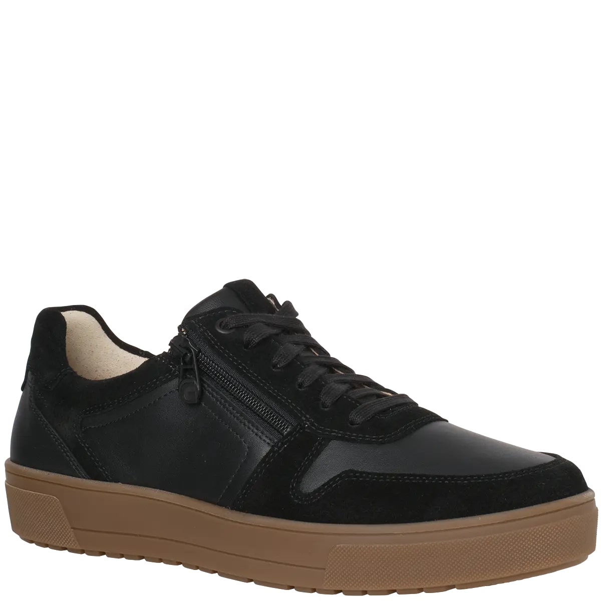 Повсякденні та модні кеди Henning від Ganter надзвичайно легкі, в мінімалістичному стилі, з акцентом на функціональність і комфорт. Вирізняються контрастом між шкірою наппа, замшею та підошвою медового кольору. Модна чашоподібна підошва надає взуттю сучасного вигляду, забезпечуючи чудове зчеплення з різними поверхнями. Стильні аплікації й точні шви створюють яскраві акценти та роблять Henning справжньою принадою для погляду. Практична блискавка ззовні полегшує взування та знімання, а піднятий каблук забезпечує стабільність. Високоякісна шкіряна підкладка гарантує комфорт при носінні, дозволяючи безпечно і зручно ходити в кросівках протягом усього дня. Рослинне дублення робить шкіру повітропроникною, еластичною та пружною, створюючи здоровий клімат для ніг.