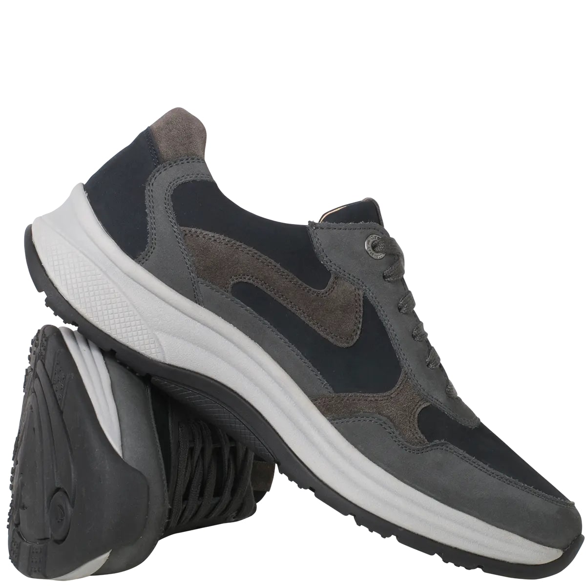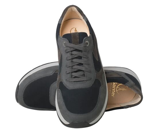 Ортопедичні кросівки High Flyer колекції Ganter Aktiv поєднують запатентовану технологію кочення з сучасним та актуальним дизайном спортивного взуття. Чорно-білі елементи на високофункціональній підошві разом із поєднанням нубуку та замші створюють модний колірний блок. Ретельно продумані деталі підкреслюють елегантний вигляд чоловічого взуття.