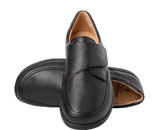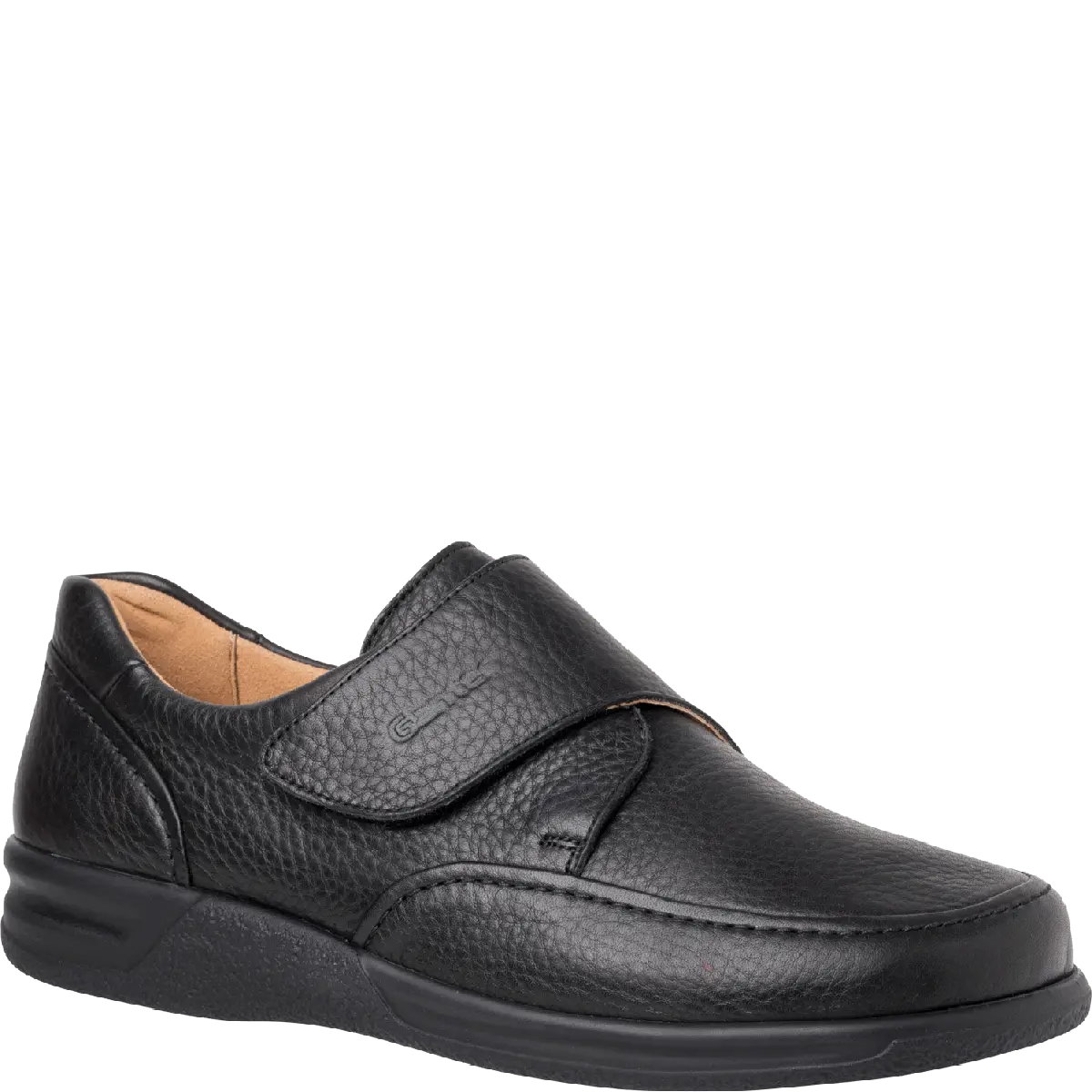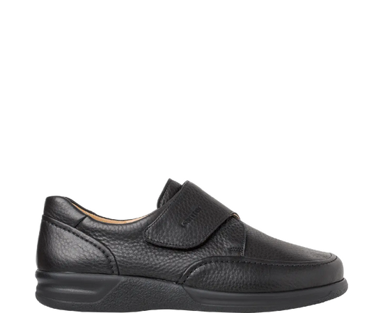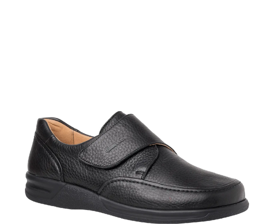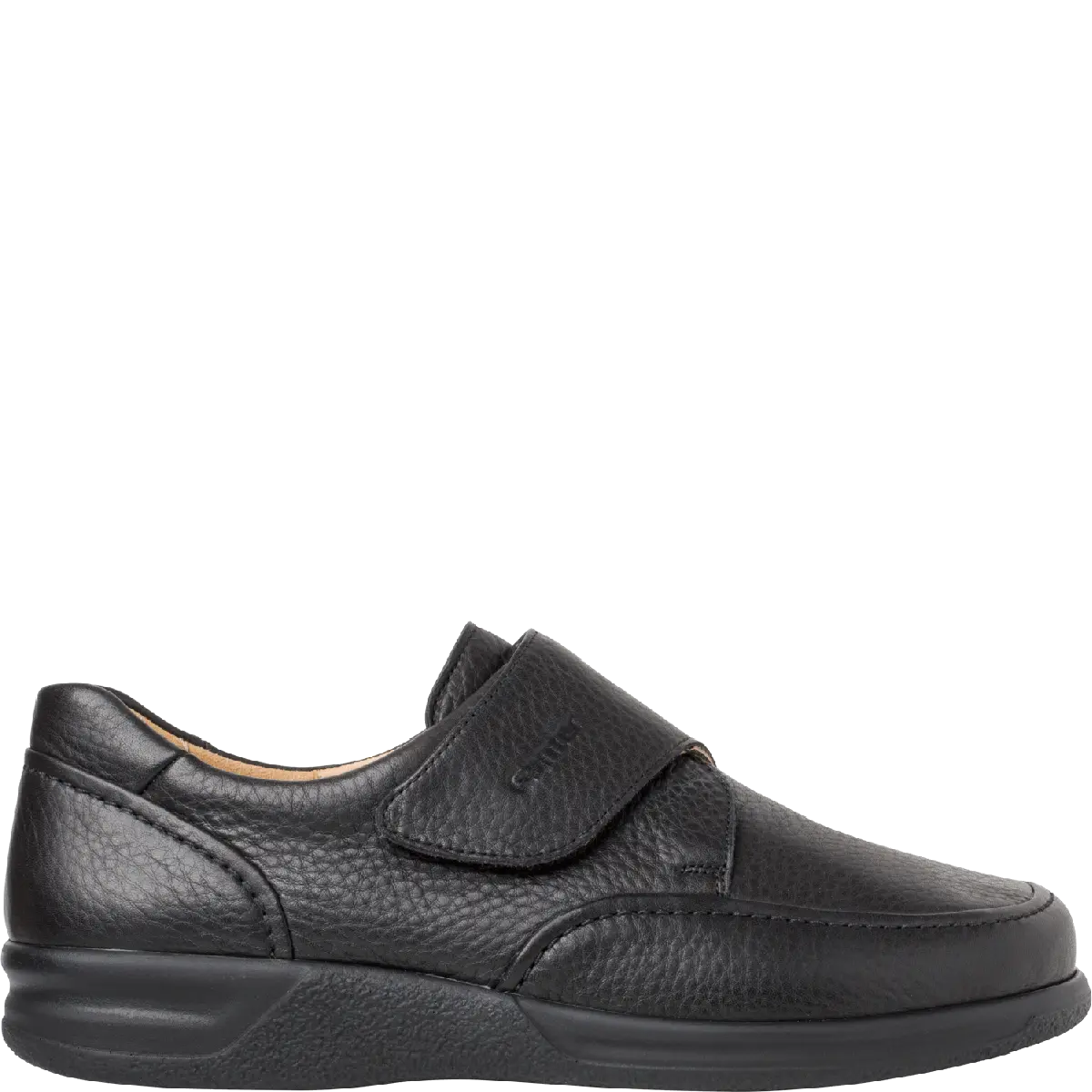 Ортопедичні туфлі GANTER Kurt з серії Sensitiv м'які і комфортні, створені спеціально для дуже чутливих ніг (без давлячих швів та зі спеціальною м'якою устілкою). Виготовлені із чорної шкіри наппа з практичною застібкою-липучкою, зручний універсальний віріант. Ортопедична устілка з'ємна, що дозволяє використовувати індивідуальну ортопедичну устілку. Підошва дуже легка і має відмінну амортизацію. У них Вам буде комфортно в будь-якій ситуації. Це відмінне придбання для гардероба в стилі Casual і для володарів чутливих стоп. Носити взуття цілий день без проблем – KURT робить це можливим!