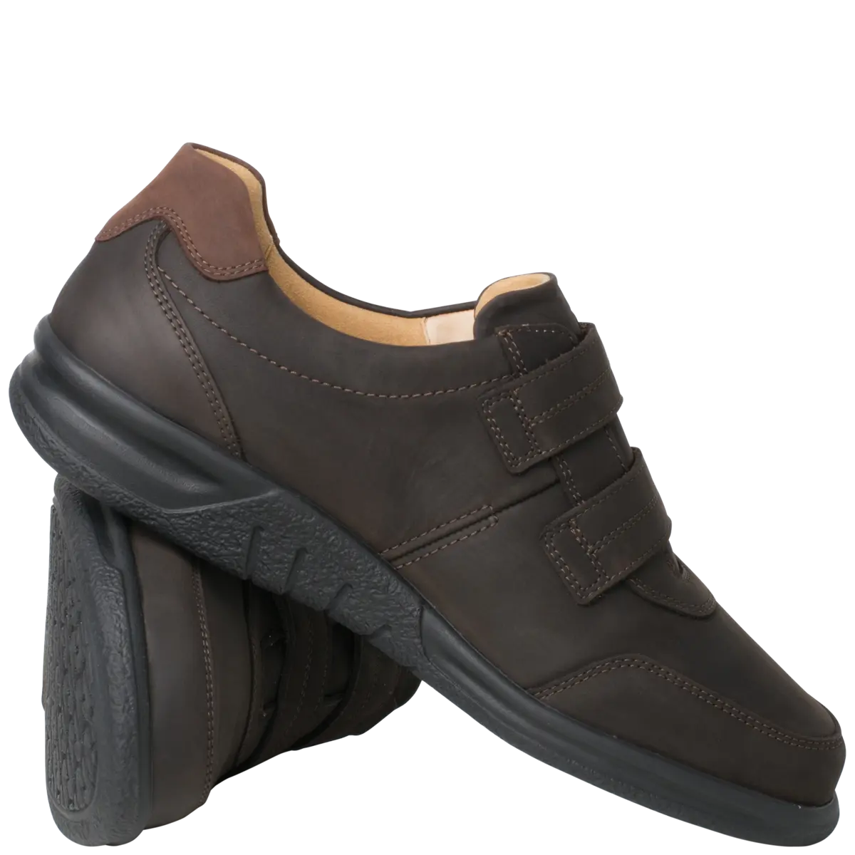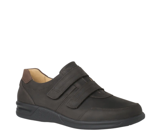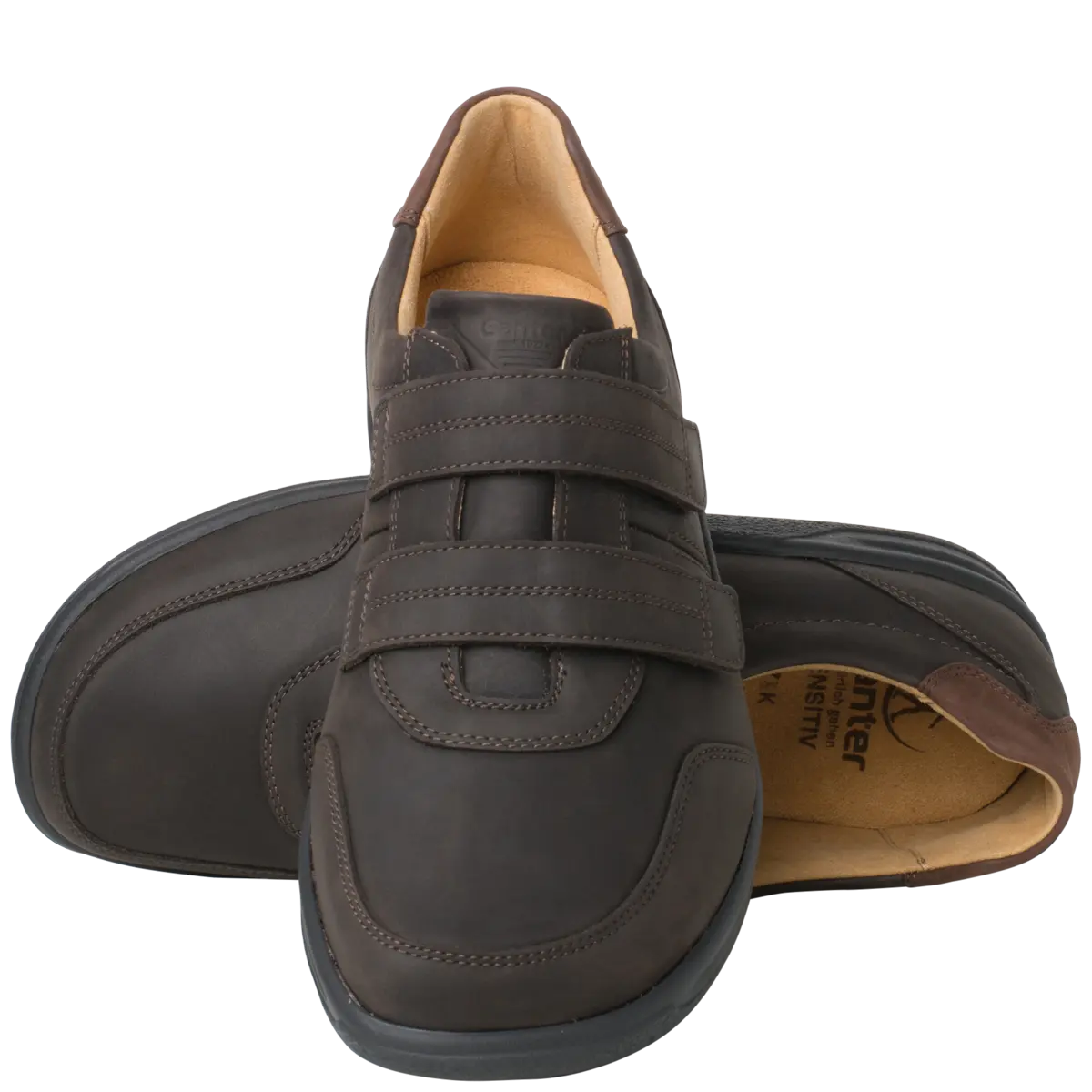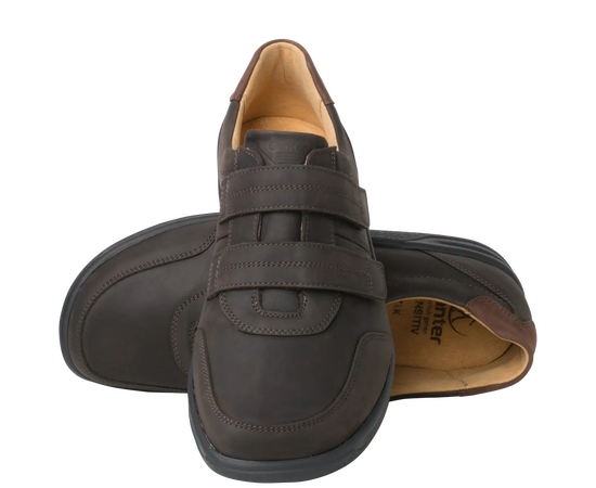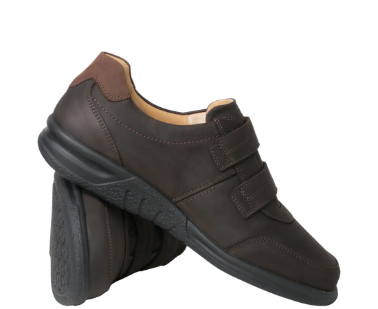 Ортопедичні туфлі GANTER Kurt з серії Sensitiv м'які і комфортні, створені спеціально для дуже чутливих ніг (без давлячих швів та зі спеціальною м'якою устілкою). Виготовлені із шкіри нубук з практичними двома стрічками на липучках дозволяють індивідуально регулювати посадку, зручний універсальний віріант. Ортопедична устілка з'ємна, що дозволяє використовувати індивідуальну ортопедичну устілку. Підошва дуже легка і має відмінну амортизацію. У них Вам буде комфортно в будь-якій ситуації. Це відмінне придбання для гардероба в стилі Casual і для володарів чутливих стоп. Носити взуття цілий день без проблем – KURT робить це можливим!
