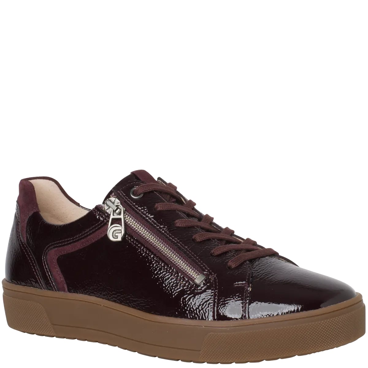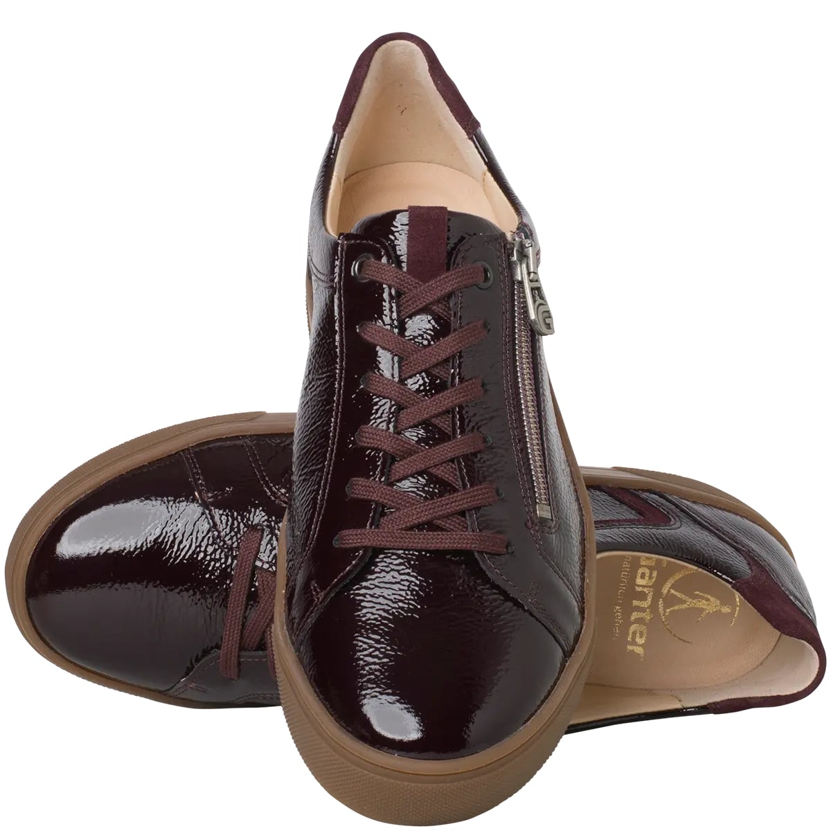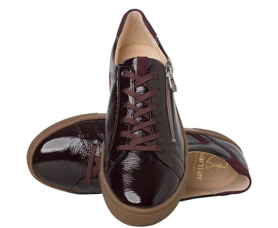Ортопедичні кеди Helena від Ganter стильні і комфортні, поєднують у собі сучасний силует із жіночними акцентами. Глянцева лакова шкіра темно-червоного кольору з м'якою текстурою доповнена продуманими деталями, такими як практична бічна блискавка та металеві люверси на шнурівці. Сучасна підошва втілює витончений спортивний стиль, забезпечуючи чудове зчеплення. Внутрішня частина цього жіночого взуття, оснащена високоякісною шкіряною підкладкою, особливо м'яка, дихаюча та вологовідштовхувальна. Одягайте ці зручні кросівки для прогулянки містом, відпочинку на вихідних або кави-брейку – Helena стане вашим елегантним повсякденним супутником, який ідеально поєднується з елегантним пальто або повсякденною джинсовою курткою.