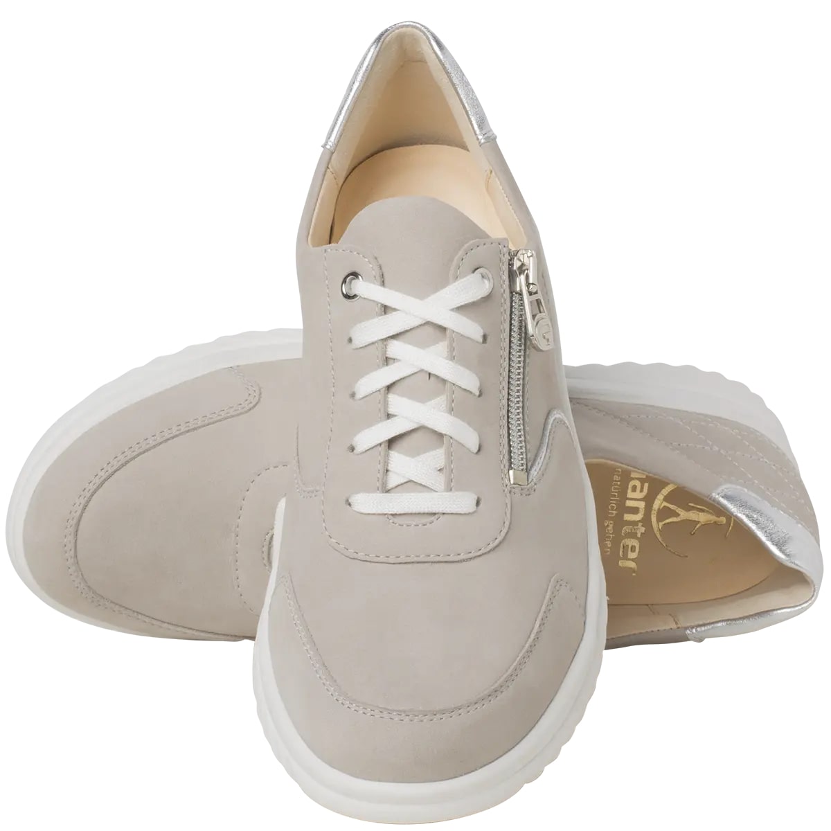 Модель кросівок Heike — сучасний універсальний варіант, м'які та комфортні, поєднують вишукані матеріали та елегантні деталі, виготовлені з м'якого нубуку, створені спеціально для дуже чутливих ніг. Ортопедична устілка знімна, що дозволяє використовувати індивідуальну ортопедичну устілку. У них Вам буде комфортно в будь-якій ситуації. Висота каблука 25 мм підтримує опорно-руховий апарат, і в той же час ви отримуєте перевагу від невеликої додаткової висоти. Внутрішня підкладка виготовлена з м'якої шкіри та додаткової набивки, яка добре облягає ногу. Поєднання шнурівки та бічної блискавки дозволяє швидко одягати та знімати. Heike — це взуття з любов’ю до деталей.