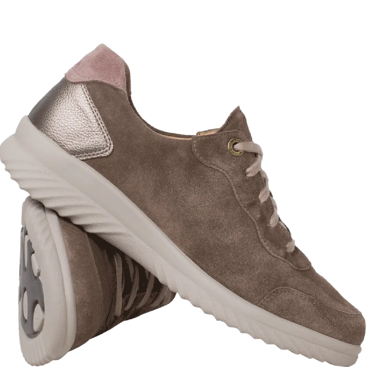 Модель Heike є абсолютно універсальною, повсякденною, але водночас шикарною! Спортивний вигляд доповнюють вишукані матеріали. Кросівки вражають своїм жіночним виглядом і першокласним комфортом. Візуальними акцентами є зсувний каблук у м’якому металіку та зовнішні шви, які створюють гарний візерунок. Завдяки висоті каблука 25 мм підтримується опорно-руховий апарат, і в той же час ви отримуєте користь від невеликої додаткової висоти.