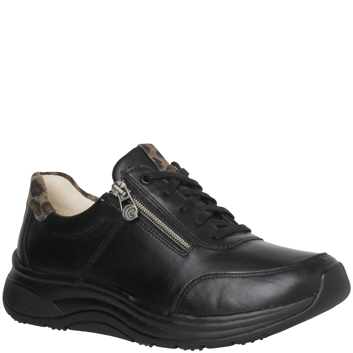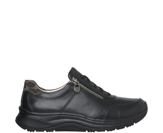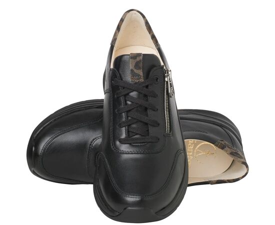 Модель High Flyer взуття з запатентованою технологією Ganter Aktiv для легкої ходи. Виготовлена з гладкої шкіри, модель має тонку аплікацію на п'яті з яскравим леопардовим принтом. Високоякісна шкіряна підкладка надзвичайно м’яка. Спортивний вигляд доповнюють вишукані матеріали. Кросівки вражають своїм жіночним виглядом і першокласним комфортом.