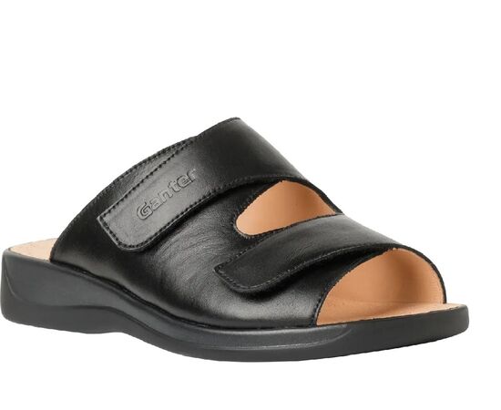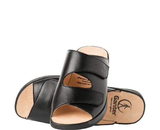 Ортопедичні шльопанці GANTER Monika в чорному кольорі стильні і легкі, м'які і комфортні. Це всесезонне взуття, яке супроводжує вас у будь-яку пору року, чи то зручне домашнє взуття взимку, чи то швидке взуття для виходу на балкон або терасу влітку. У них Вам буде комфортно під час тривалих прогулянок в місті і на природі. Відмінне доповнення до гардероба в стилі Casual. Повнота взуття - G (стандартна, підійде практично кожному), забезпечує достатньо місця для стопи, а устілка анатомічної форми гарантує приємний крок. Обидва ремінці регулюються липучкою. Популярна в усьому світі класика!