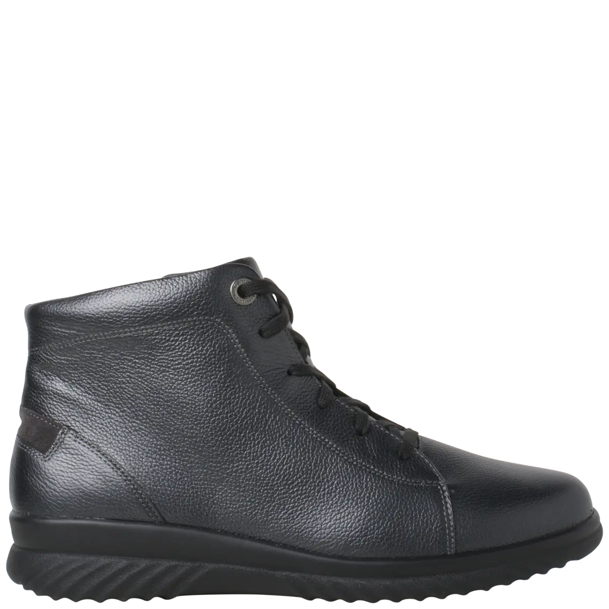 Черевики Heike поєднують комфорт із сучасним виглядом. Темно-сіра металева шкіра виглядає неймовірно м’якою та має тонке мерехтіння. Практична застібка-блискавка з внутрішньої сторони дозволяє легко вдягнутися у взуття. Завдяки висоті каблука 25 мм підтримується опорно-руховий апарат, і в той же час ви отримуєте користь від невеликої додаткової висоти.