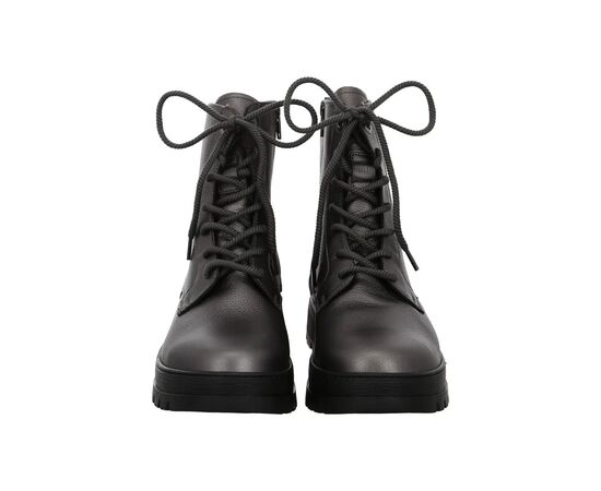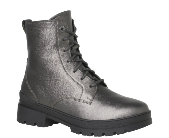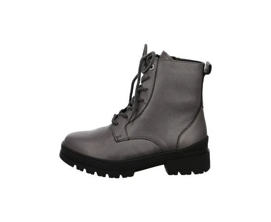 Ортопедичні черевики Gela Stfl від Ganter стильні і комфортні. Гладка шкіра кольору антрацит металік робить взуття справжньою привабливим. Візуально взуття доопрацьовано чудовими швами з боків. Окрім практичної блискавки з внутрішньої сторони, ботильйони мають шнурівку, тому їх можна легко одягати та знімати. Тепла підкладка з вовни забезпечує приємне тепло ніг. У них Вам буде комфортно під час довгих прогулянок. І останнє, але не менш важливе: блоковий каблук із виразно профільованою підошвою підкреслює повсякденний образ. Підходить для прогулянки по місту, в офіс та до повсякденного стилю одягу. Черевики мають знімну устілку, м'яку підкладку, що запобігає утворенню точок тиску в першу чергу.