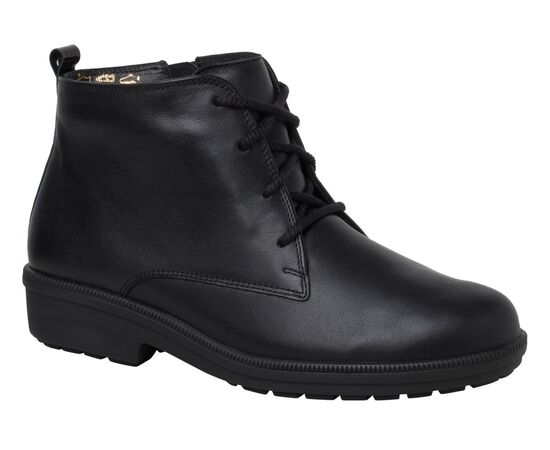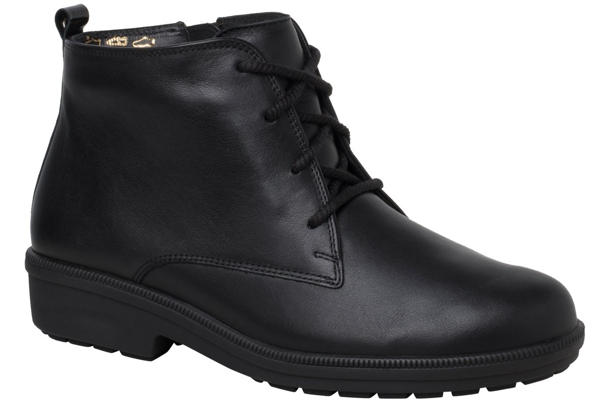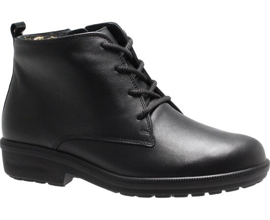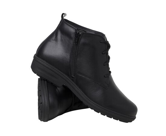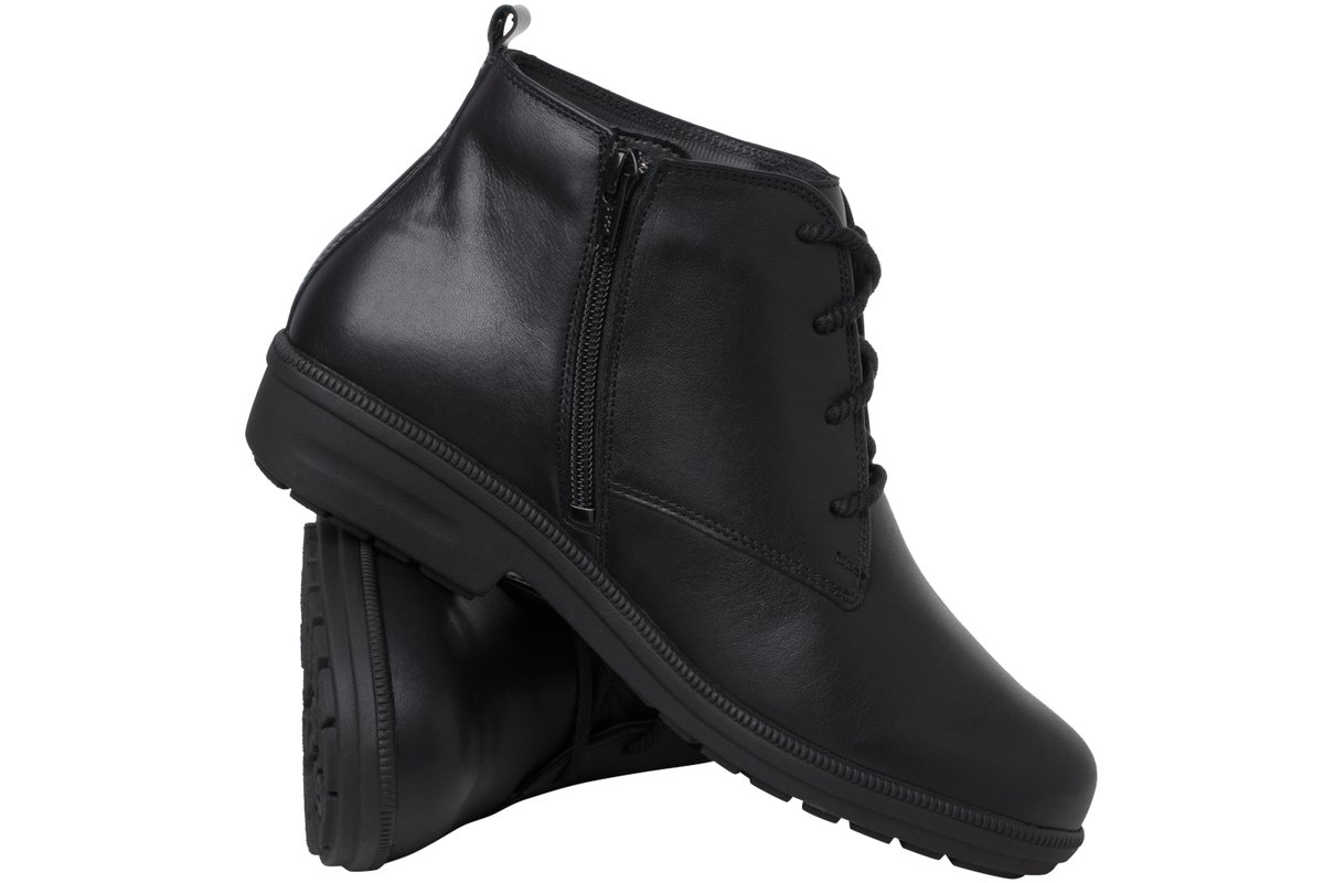 Ортопедичні черевики Kathy від Ganter стильні та комфортні. Чорна м'яка шкіра привертає увагу і чудово поєднується з модними кольорами верхнього одягу. Холодні температури не зашкодять вашим ногам у цьому взутті, завдяки затишній підкладці з овчини, що зігріває їх. Застібка-блискавка та шнурівка робить їх особливо зручними в користуванні. У них Вам буде комфортно під час довгих прогулянок. Ідеальний образ для прогулянки містом з друзями або прогулянки в парку. Повнота взуття - К (призначена для дуже широких ніг).