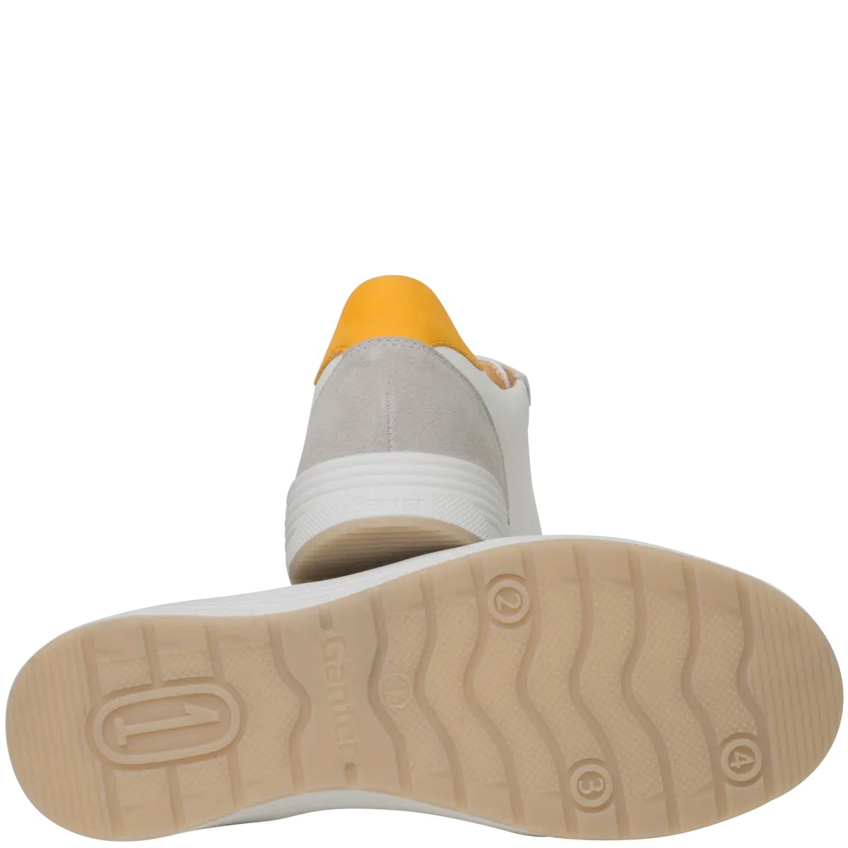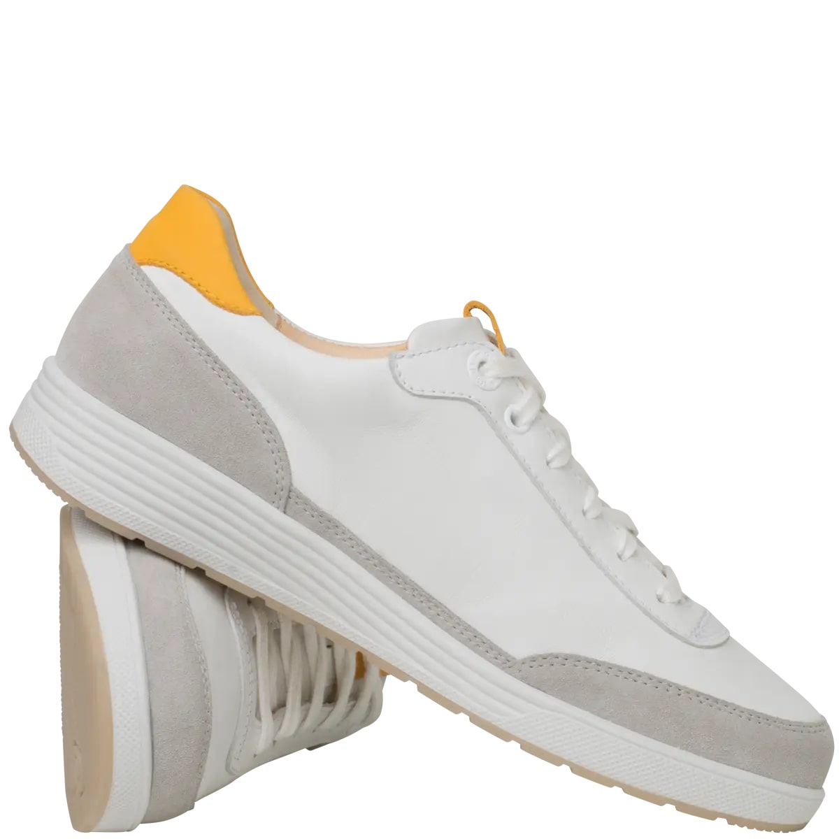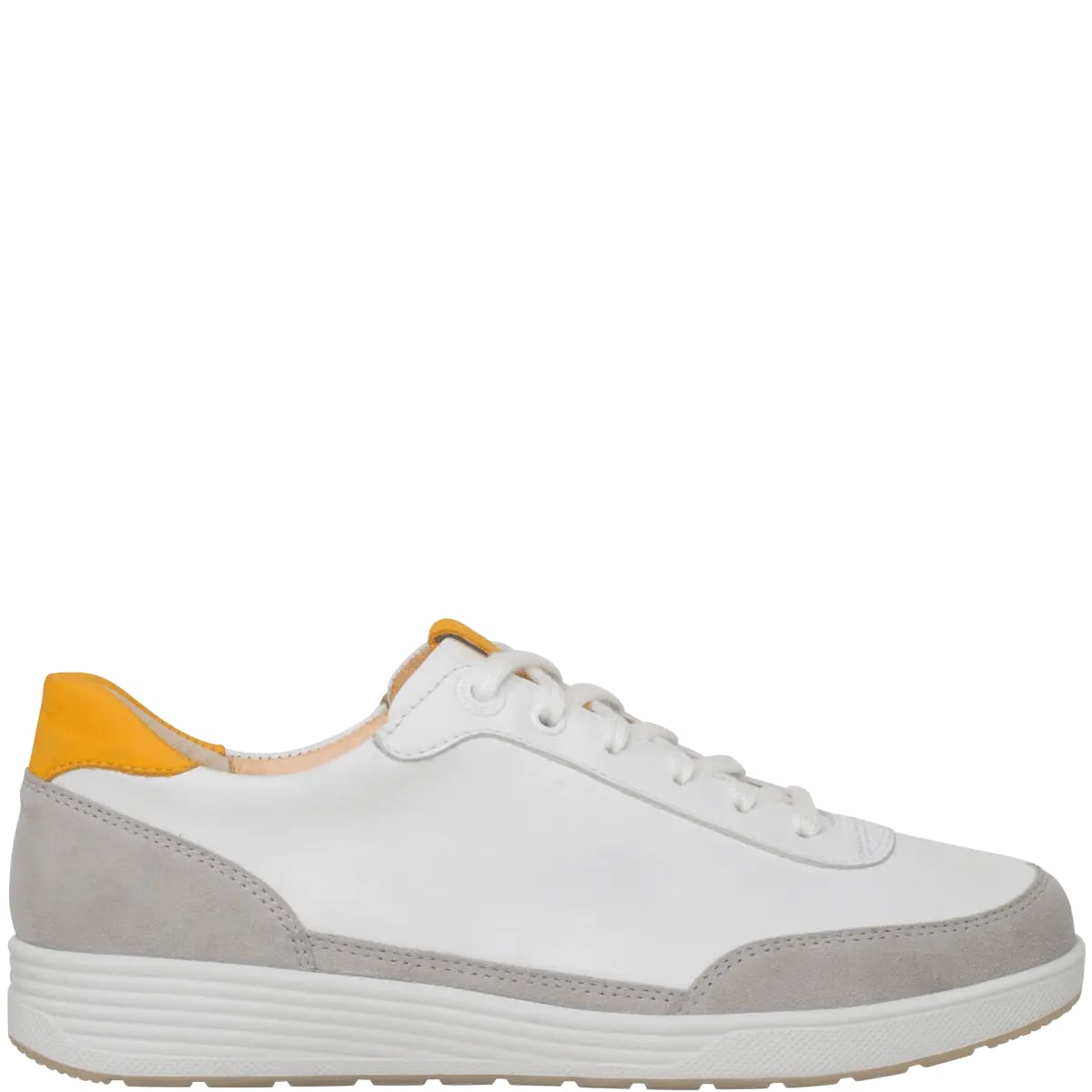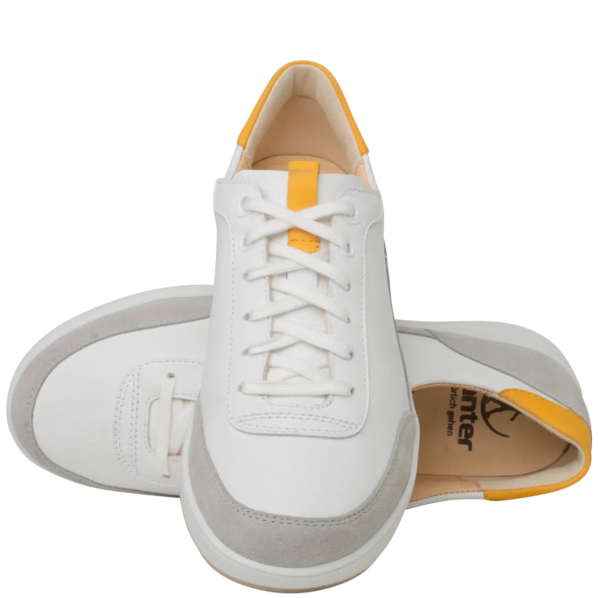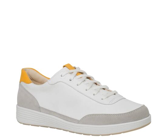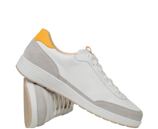 Ортопедичні кросівки GANTER Gerda новинка сезону — проста і водночас сучасна модель з модним ретро-виглядом. Еквівалент кросівок Klara, але з шириною G вражають зручною посадкою та заокругленим носком. Версія з гладкої та замшевої шкіри з витонченими деталями завершується вшитими підборами - класний образ з плісированими спідницями, джинсами та розкльошеними брюками. Біла підошва з канавками привертає увагу, особливо легка і не ковзає.
