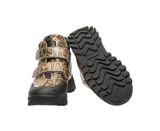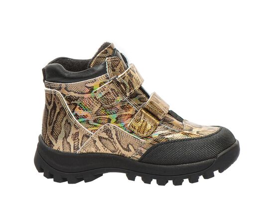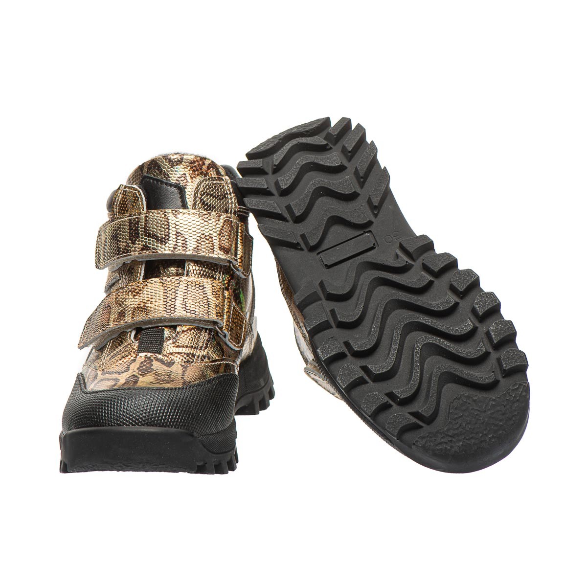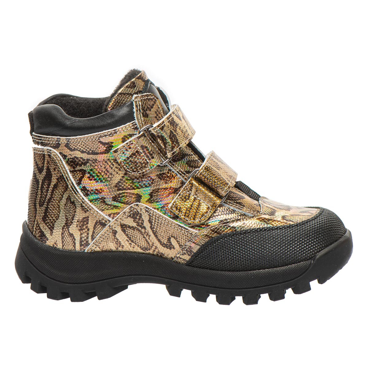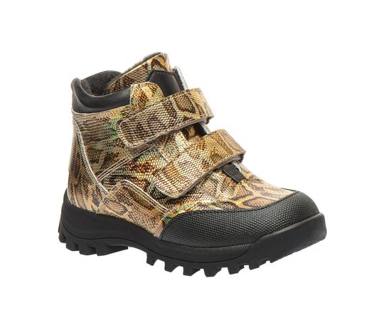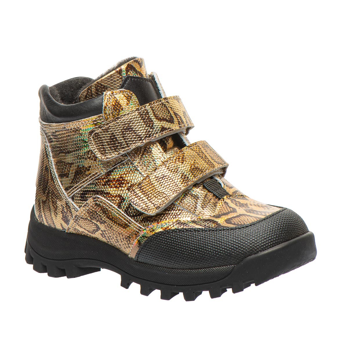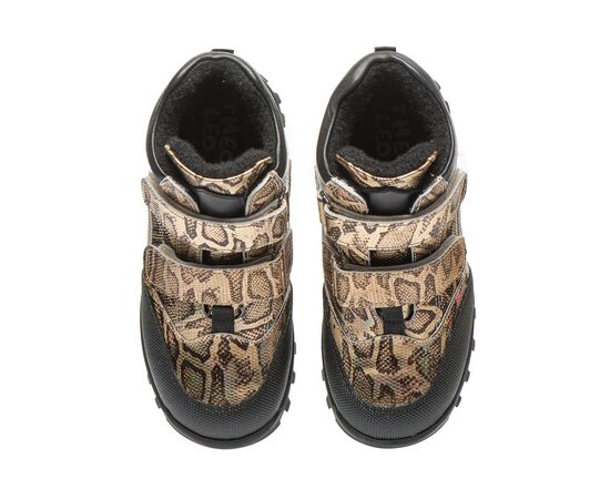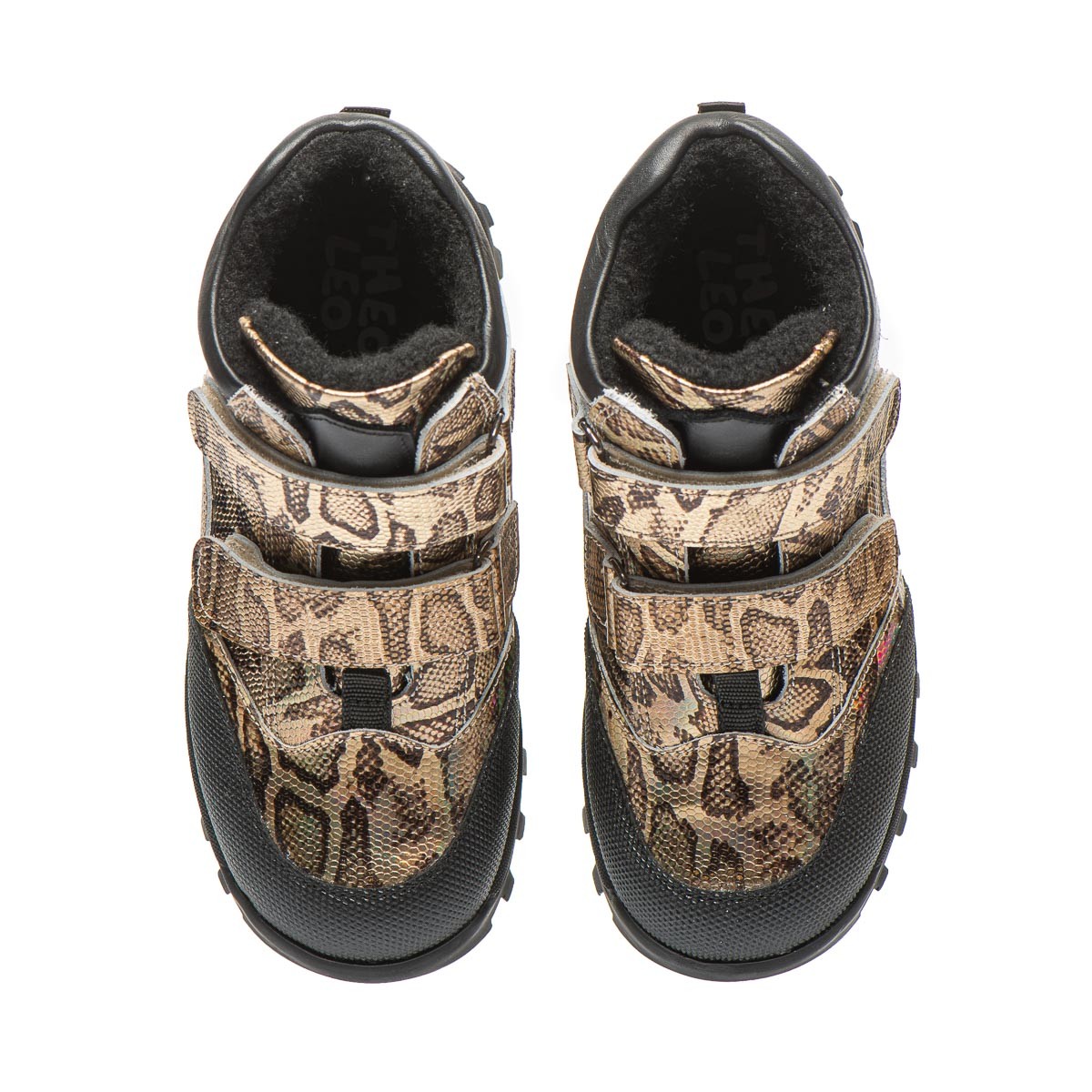 Theo Leo 500323 - якісні демісезонні черевики для активної дитини виконані з натуральної шкіри чорного кольору з яскравим малюнком "золотий пітон". Носок моделі укріплений ущільненою вставкою. Надійно фіксуються на нозі за допомогою двох липучок.