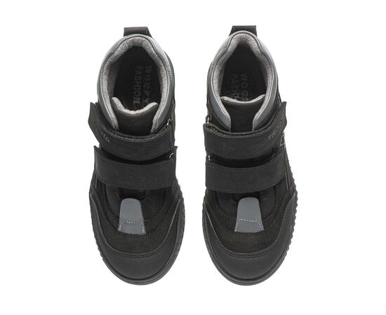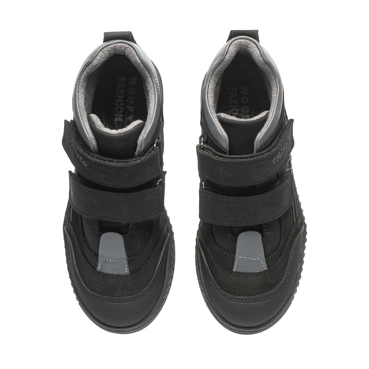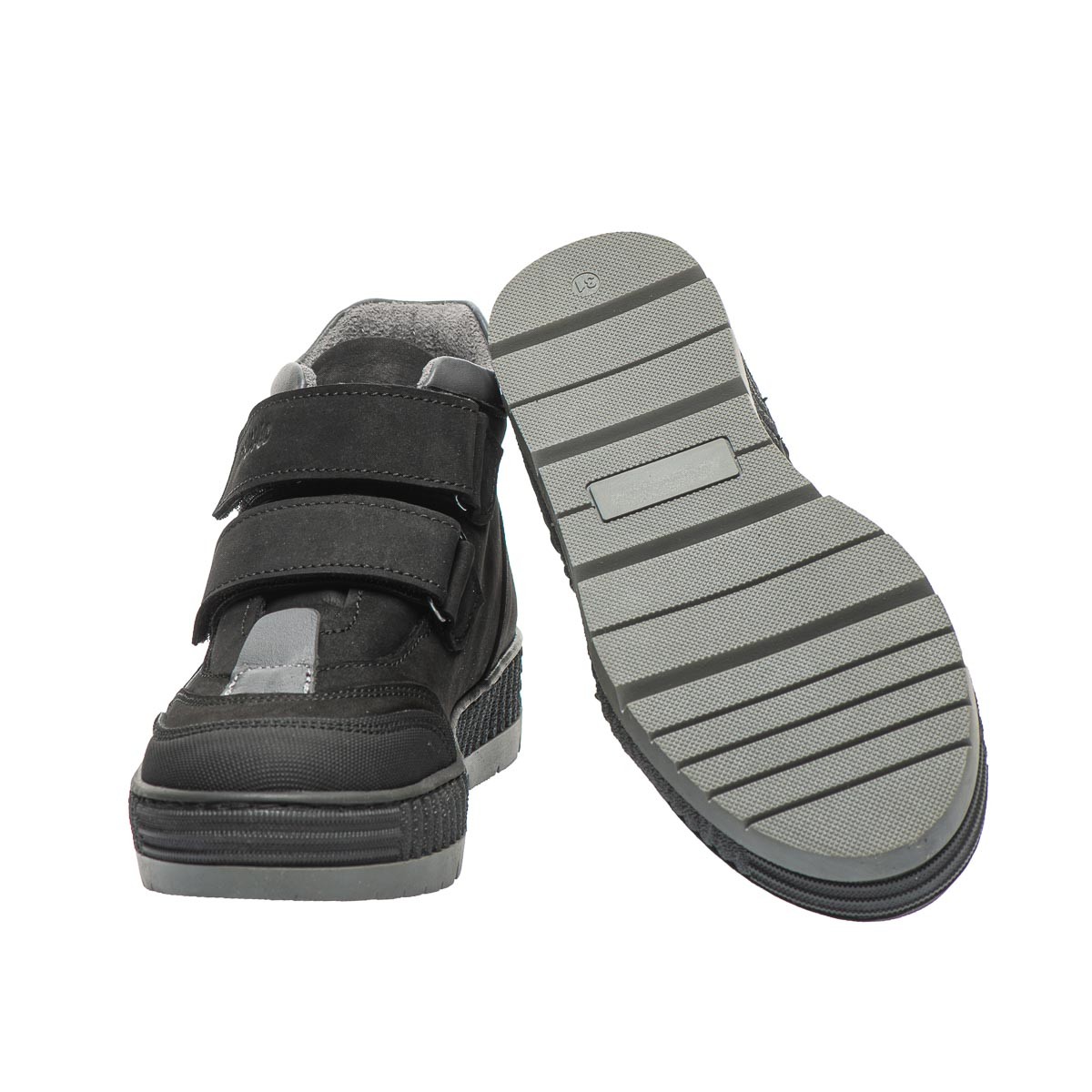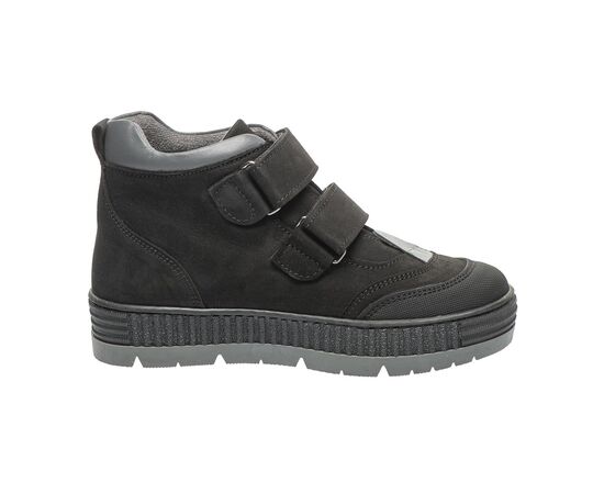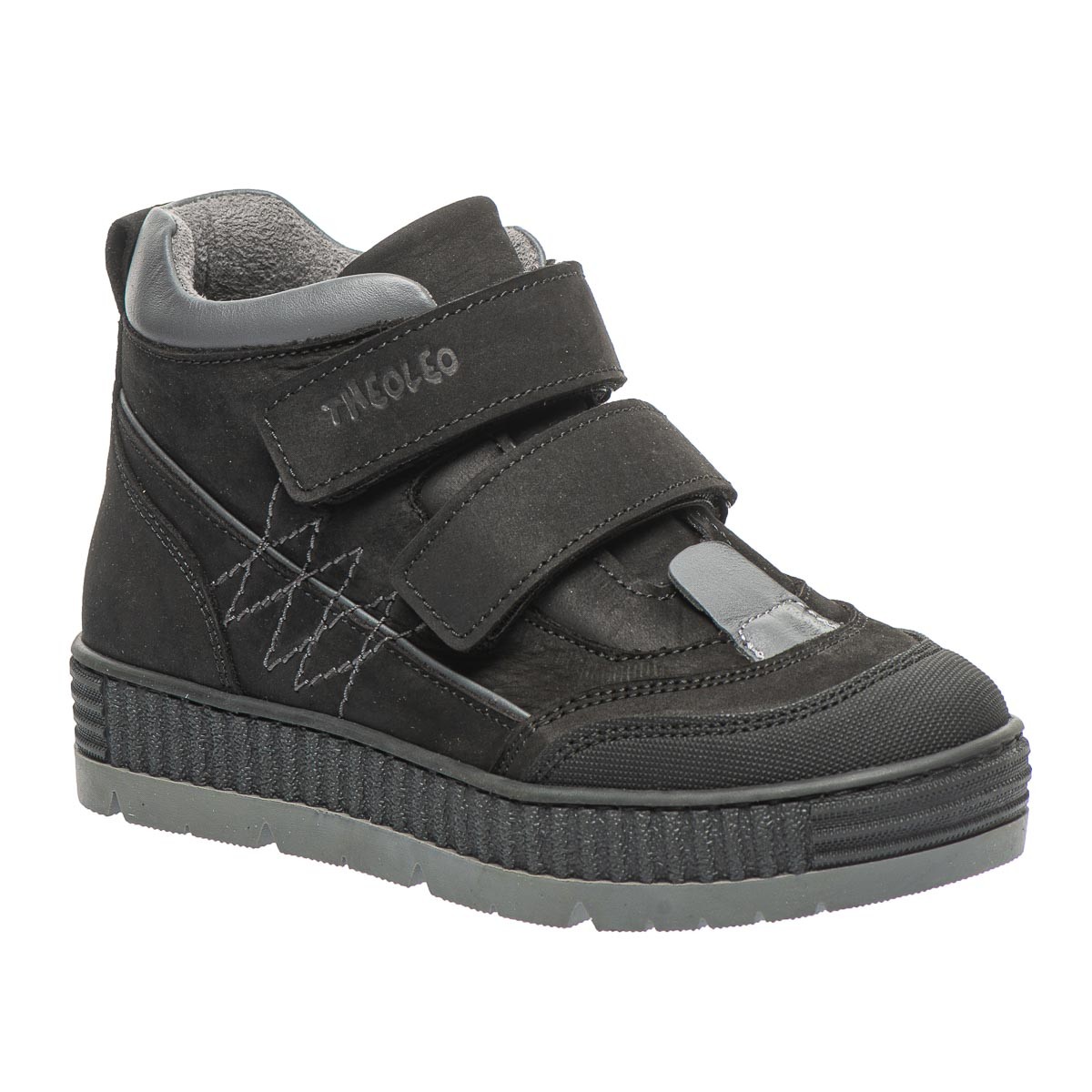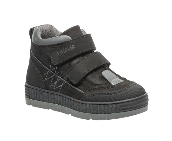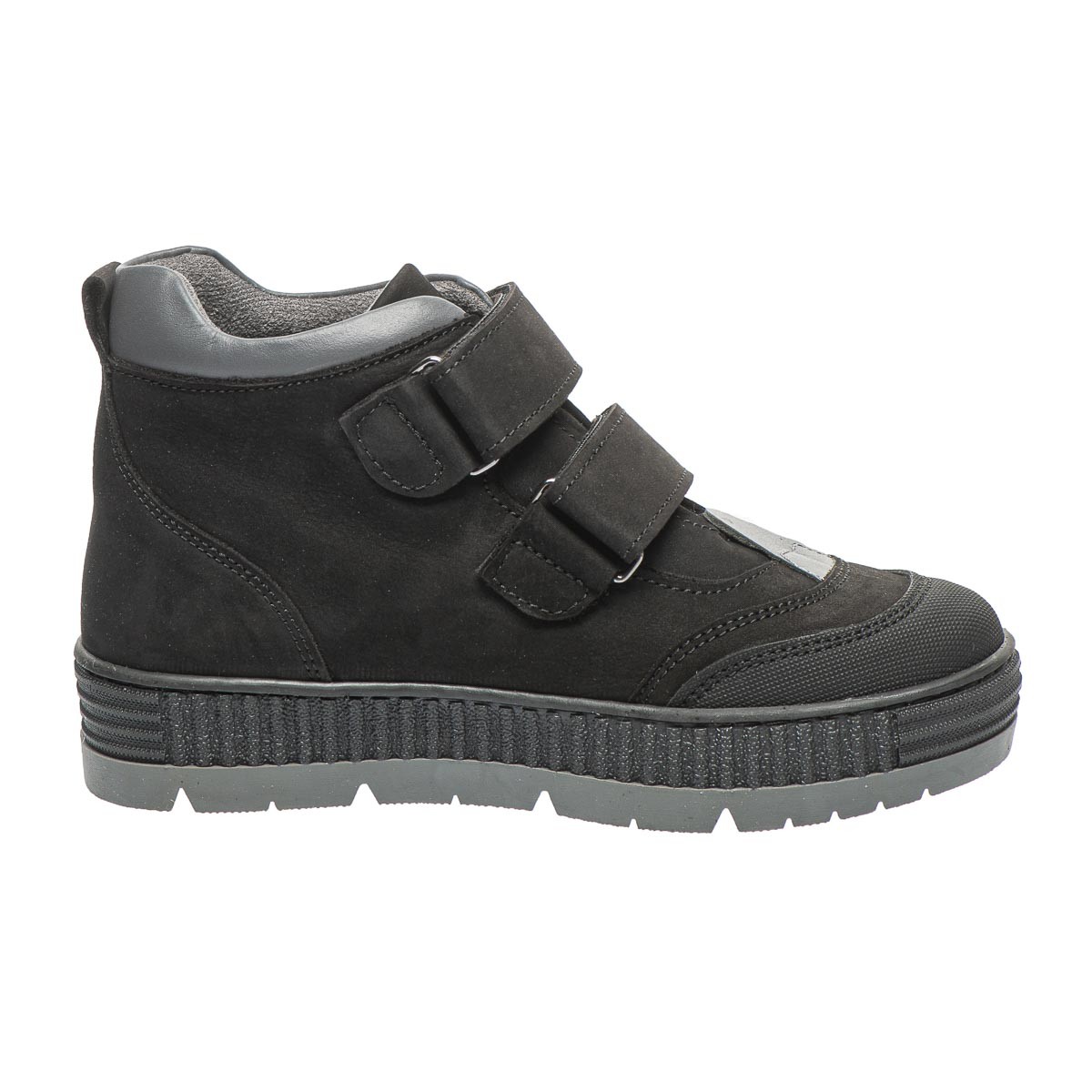 Theo Leo 502323 - якісні демісезонні черевики для активного хлопчика виконані з натурального нубуку чорного кольору, носок укріплений ущільненою вставкою. Надійно фіксуються на нозі за допомогою двох липучок.