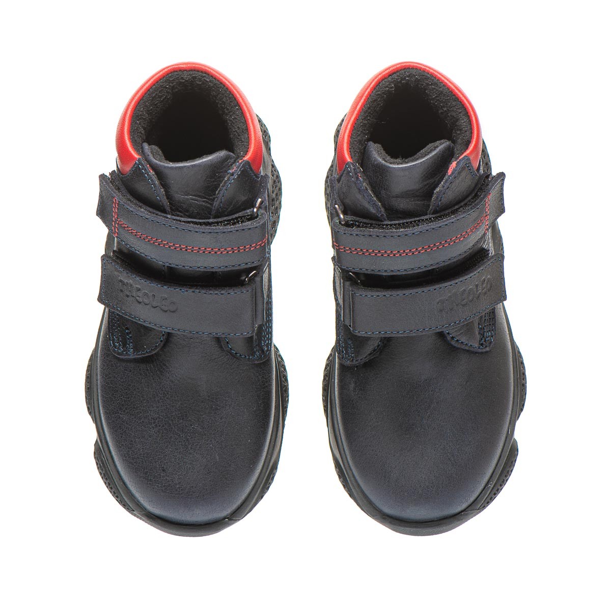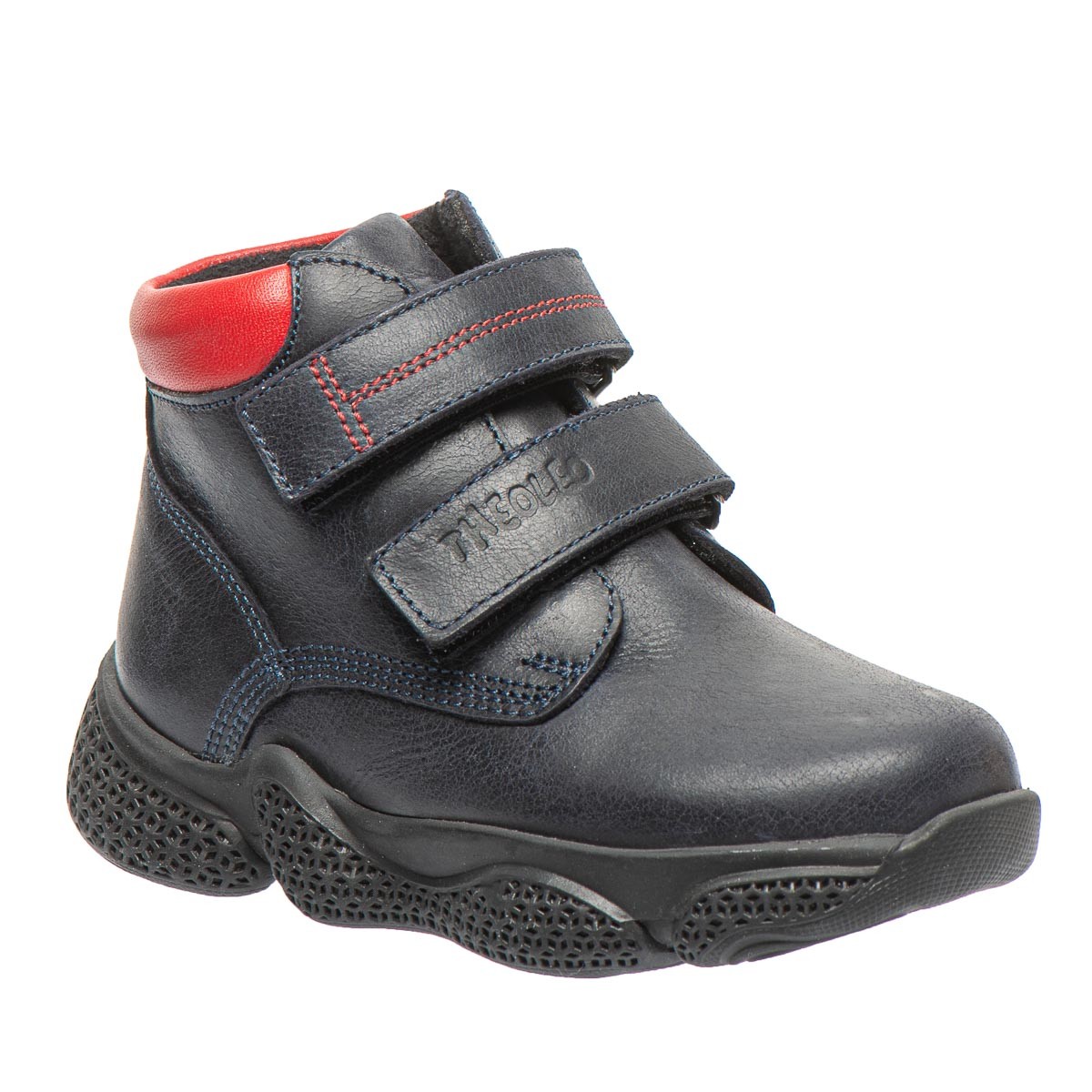 Theo Leo 503323 - якісні демісезонні черевики для активного хлопчика виконані з натуральної шкіри синього кольору. Модель утеплена флісом, устілка шкіряна. Надійно фіксуються на нозі за допомогою двох липучок. Спортивна трендова підошва підкреслює оригінальність моделі.