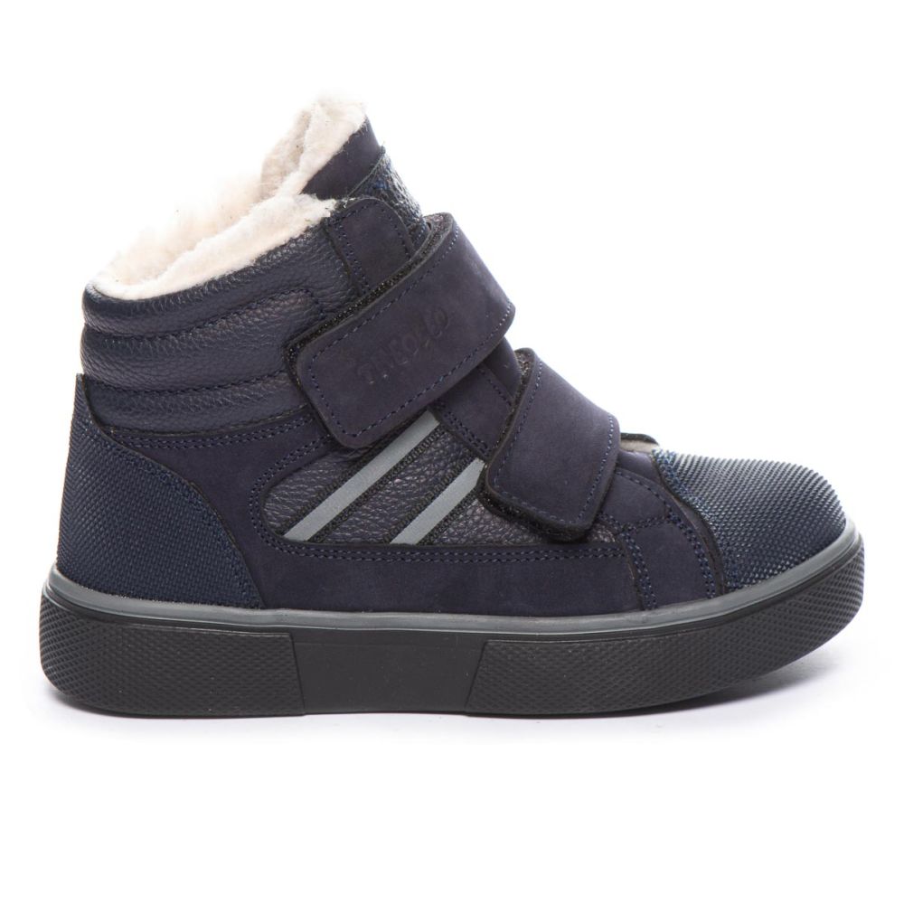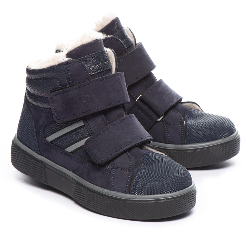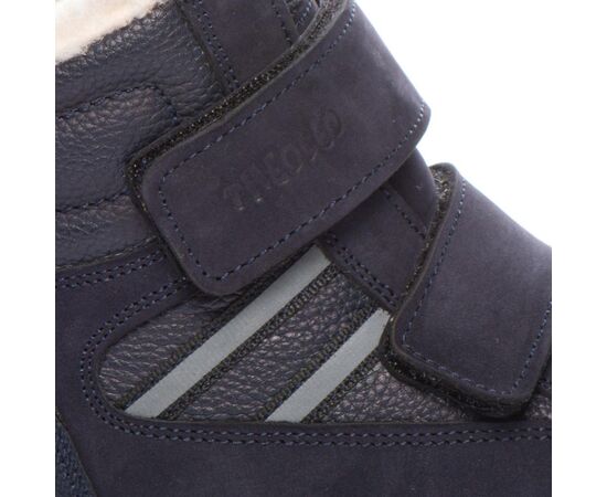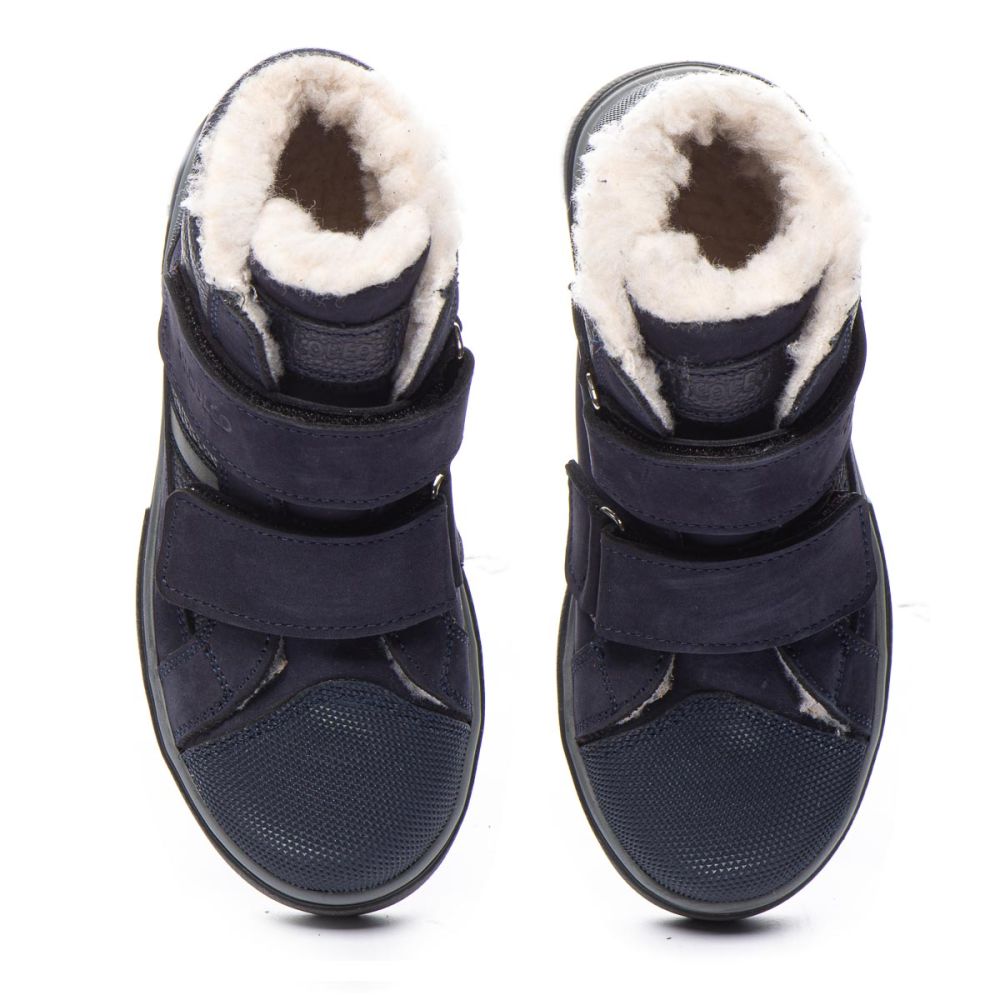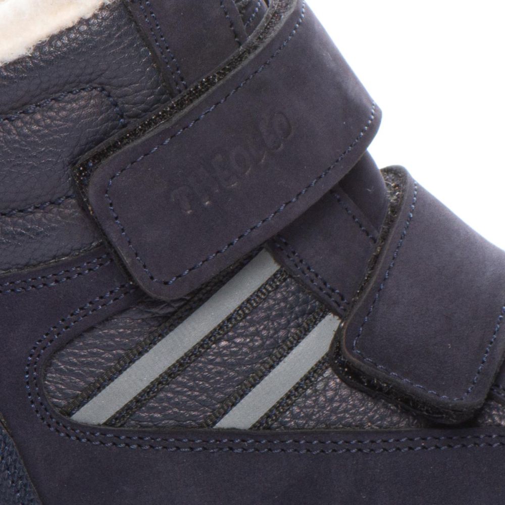 Theo Leo 1394 якісні зимові ортопедичні черевики для активної дитини виконані з натурального нубуку, у стильному синьому кольорі. Мають прогумований носок. Модель поєднує в собі високу якість і комфорт, створена для тривалих прогулянок і активних ігор. Устілка знімна, завдяки чому її можна замінити на лікувальну або індивідуальну.