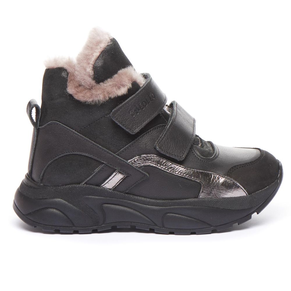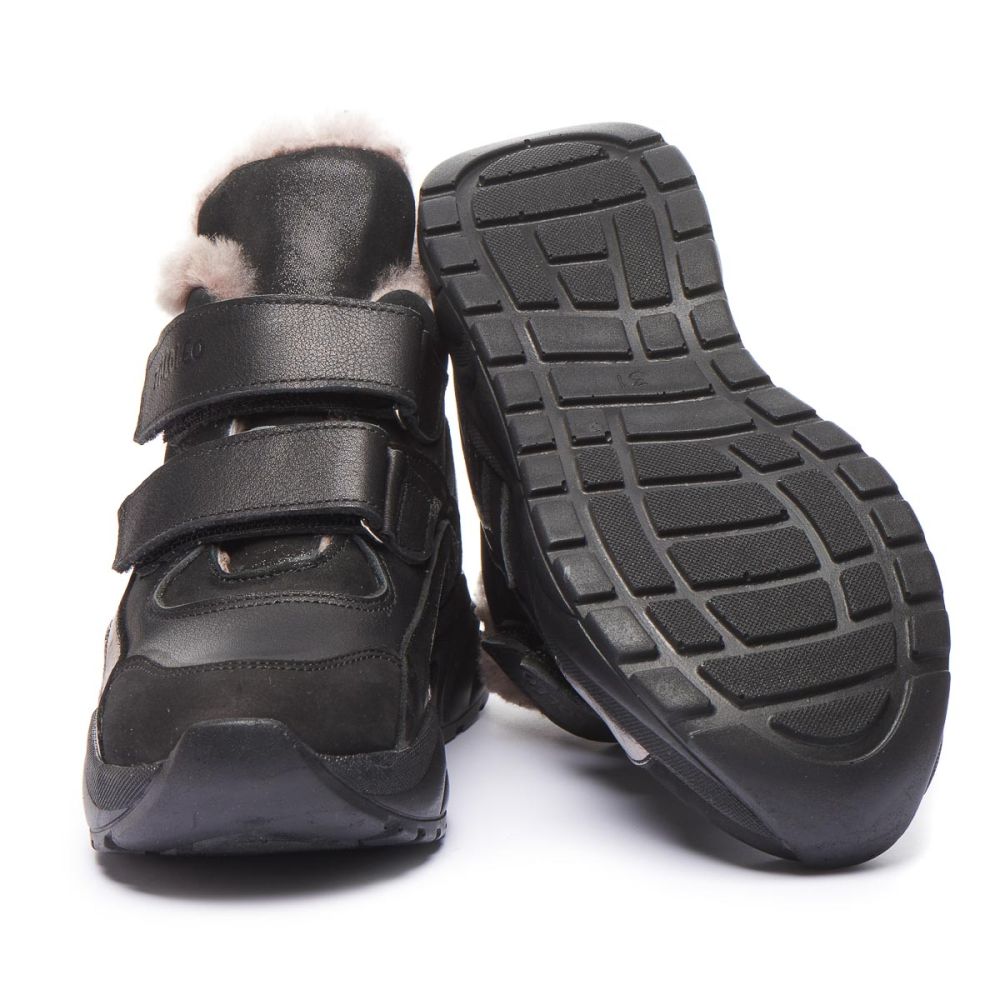 Theo Leo 1399 якісні зимові ортопедичні черевики для активної дитини виконані з натуральної шкіри, у стильному чорному кольорі. Модель поєднує в собі високу якість і комфорт, ідеальні для активного зимового відпочинку. Устілка знімна, завдяки чому її можна замінити на лікувальну або індивідуальну.