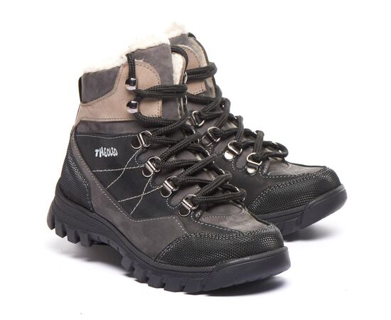 Theo Leo 1407 якісні зимові ортопедичні черевики для активної дитини виконані з натурального нубуку, у чорному з сірими і коричневими вставками. Мають прогумований носок. Модель поєднує в собі високу якість і комфорт, створена для тривалих прогулянок і активних ігор.