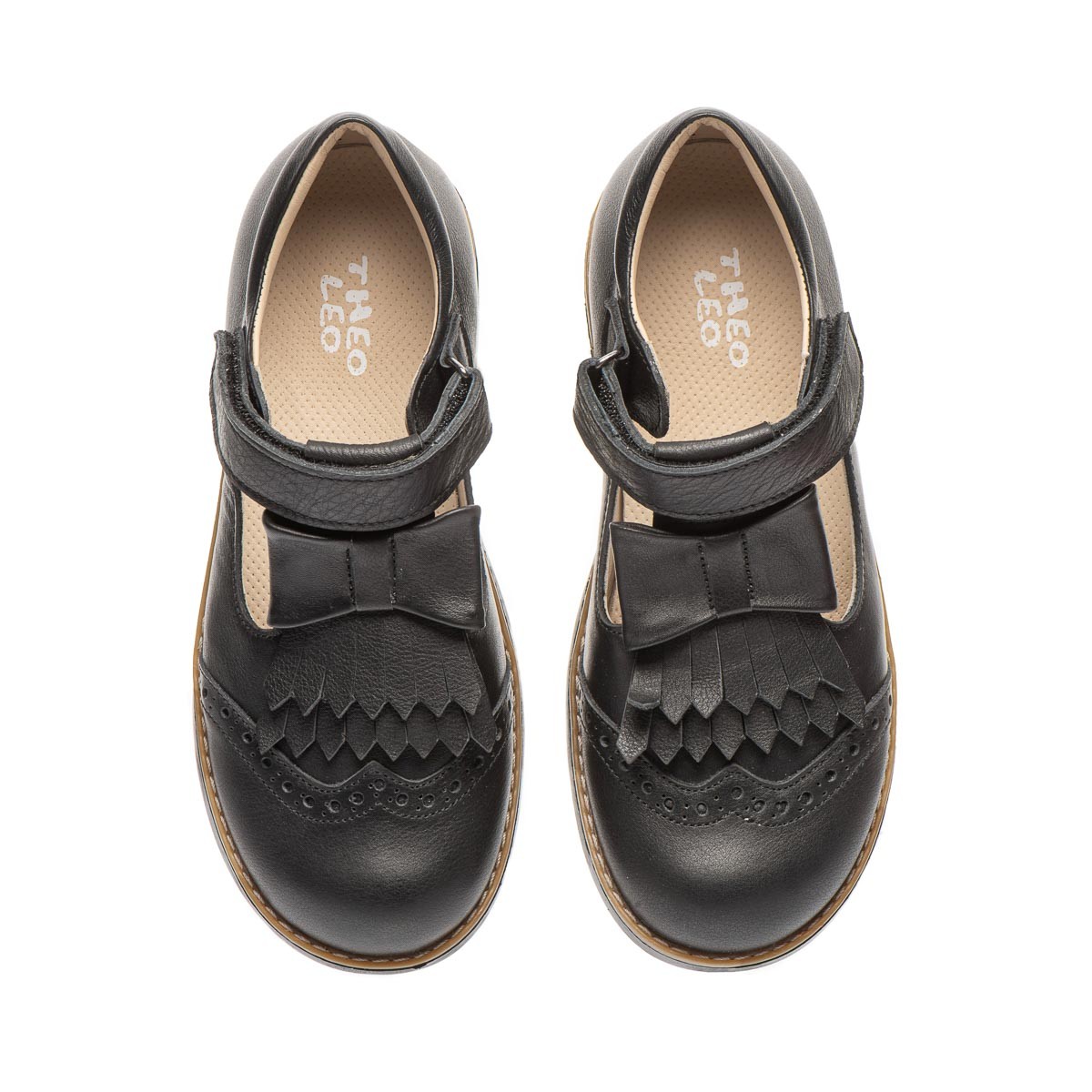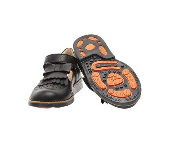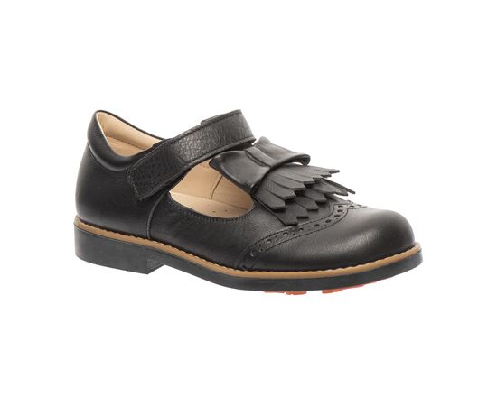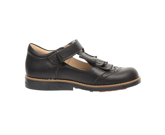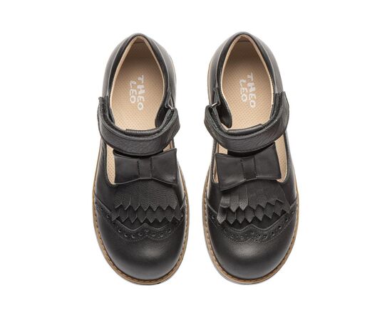 Туфлі Theo Leo 304323 туфлі для дівчинки всередині та зовні виконані з натуральної шкіри. Фіксується на нозі за допомогою однієї липучки, зручно одягати та знімати. Туфлі ортопедичні оснащені ущільненим задником, анатомічною устілкою з невеликим супінатором і каблуком Томаса. Виконані в класичному чорному кольорі, прикрашені красивим бантом із бахромою. Це взуття підійде для школи та прогулянок на природі.