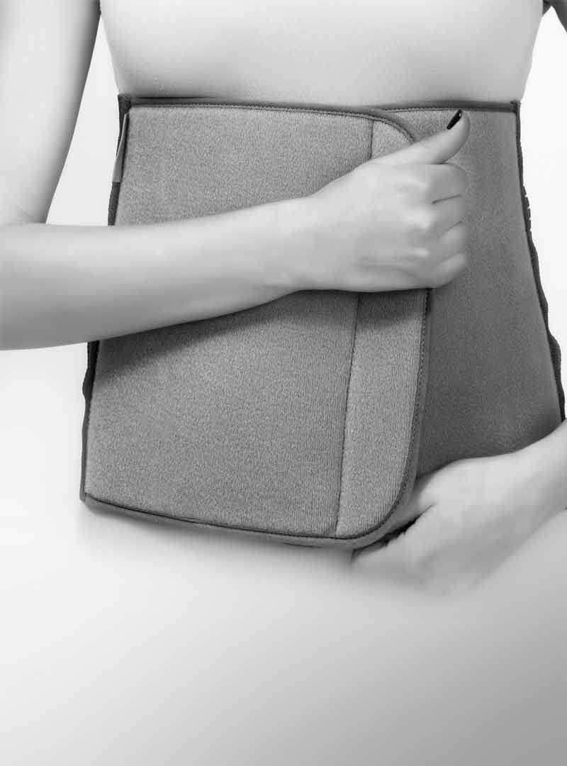 2. Затягніть та зафіксуйте нееластичні пластини спереду. Якщо виріб занадто тугий, ослабте його. Якщо ви не відчуваєте еластичного тиску, вам, ймовірно, слід зафіксувати його в більш тугому положенні.